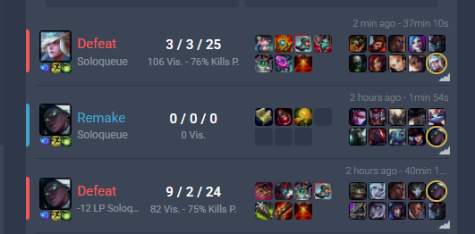Чёт давно не запускал.и не хочеца. Опять тянуть якорей,гореть с мебели на других лейнах. Обтекать от киберфейкеров на смурфах.принимать на лицо тугую струю ритобэленса +15,-35. Бессмысленно бегать жать кнопки в ожидании фф15. Нахуй вообще придумали эти сплиты,они бы их ещё каждый день ресетали .так залез в родное говно 4 1лп,и дропаешь это говно до след сизна,восстанавливая психику что райоты отрейпили.я ещё с прошлой калибровки не добугуртил ,и тут опять флешбэки ....