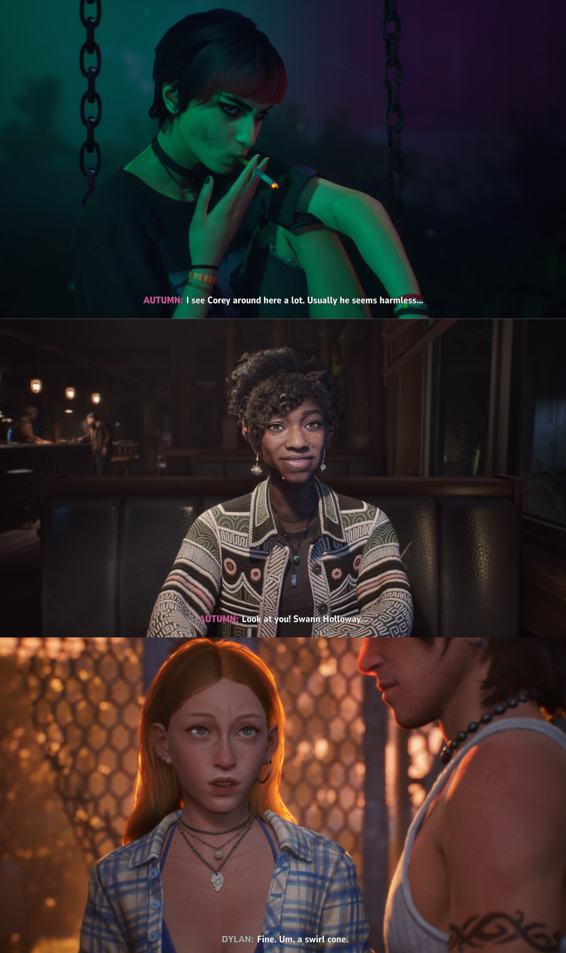 Я почти ожидал (и надеялся на) безумие уровня Очень странных дел. В кассете 2 ЕСТЬ какое-то сверхъестественное безумие, но оно ощущалось как-то случайным и неудовлетворительным? Бездна так и не была объяснена, и я могу с этим смириться (подобно тому, как способности Макса путешествовать во времени так и не были объяснены в Life is Strange), но я все еще надеялся на что-то большее в этот раз, помимо туманных намеков на колдовство. Думаю, это моя вина, но мне показалось, что маркетинг слишком сильно фокусировался на сверхъестественном. Однако одна хорошая вещь в этой истории заключается в том, что ваш выбор действительно имеет значение и повлияет на ваши отношения с девушками и на финал.