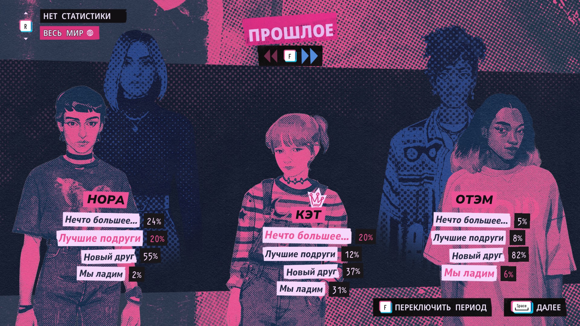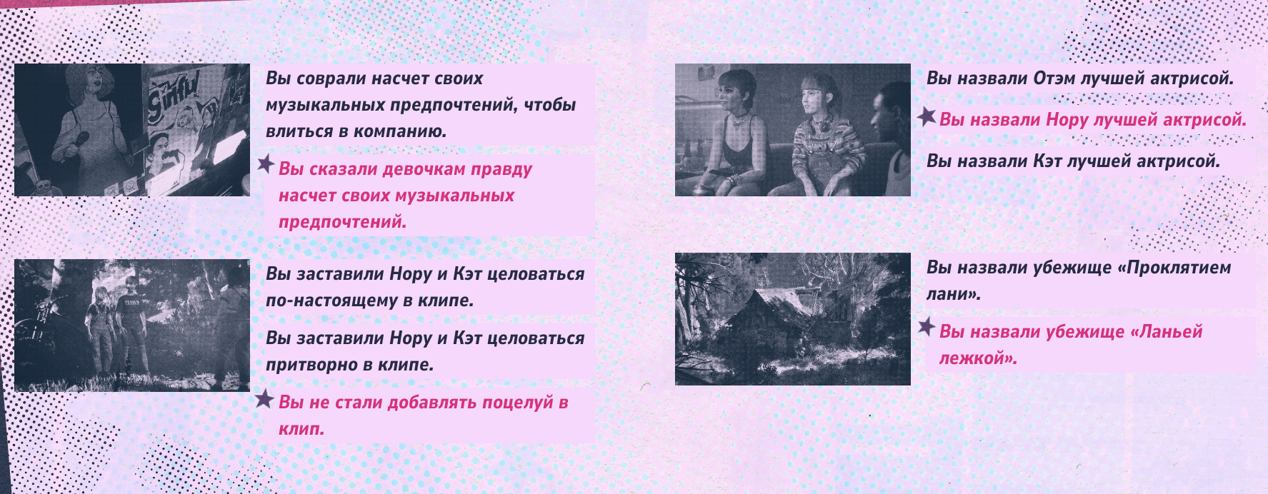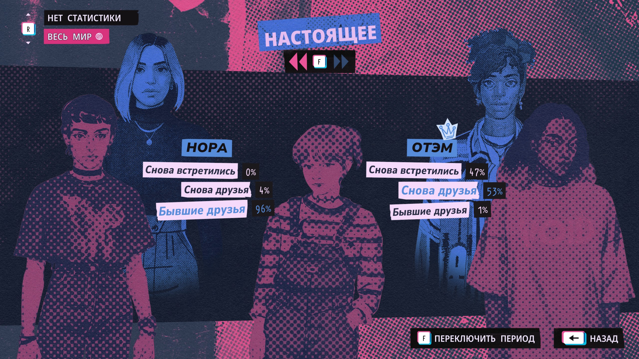 >>49580997 На второй кассете есть ачивка на лучшее отношения со всеми. Мне кажется я тоже мог получить нечто большее с Кэт и Норой, но чет мне не хотелось случайно заромансить Нору и я спецом выбрал несколько негативных выборов с ней.