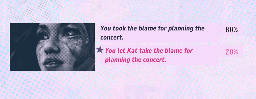 Так и не понял почему все затерпели и взяли вину на себя, ведь идея провести концерт была за Кэт, да и она любит выебнуться и взять и показать свою "силу" 80/20 гы