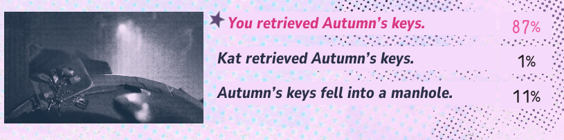 >>50208868 Вообще, игра во многом копирует первую часть и слегка BTS: тихий городок, загадочное убийство, личность главгада, ролевая игра, которую тут растянули аж на целый эпизод, и т.д. Но, по правде говоря, во время прохождения я этого особо не замечал. А так, любимый момент — концерт, на котором выступает Алекс. Ну, еще сцены с Райаном довольно милые.