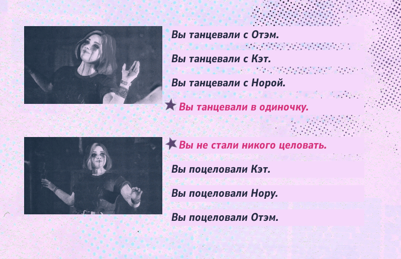 >>50149733 >А разве не в том же эпизоде, где у шкафа поцеловаться можно? Там она как раз говорит, о чем я написал. >Ну "снимать" еще не значит "проникать" Смысл в подобных фотографиях, если ты не испытываешь сексуального влечения? >учитываю кучу срачей в интернете, что она та еще манипуляторша, может она дразнила, но не давала Вряд ли, учитывая их любовные записки и клятву на крови. >Еще раз, игра нам стопроцентно на эти вопросы не отвечает, это уже каждый сам додумывает для себя Не отвечает, но оставляет жирные намеки.