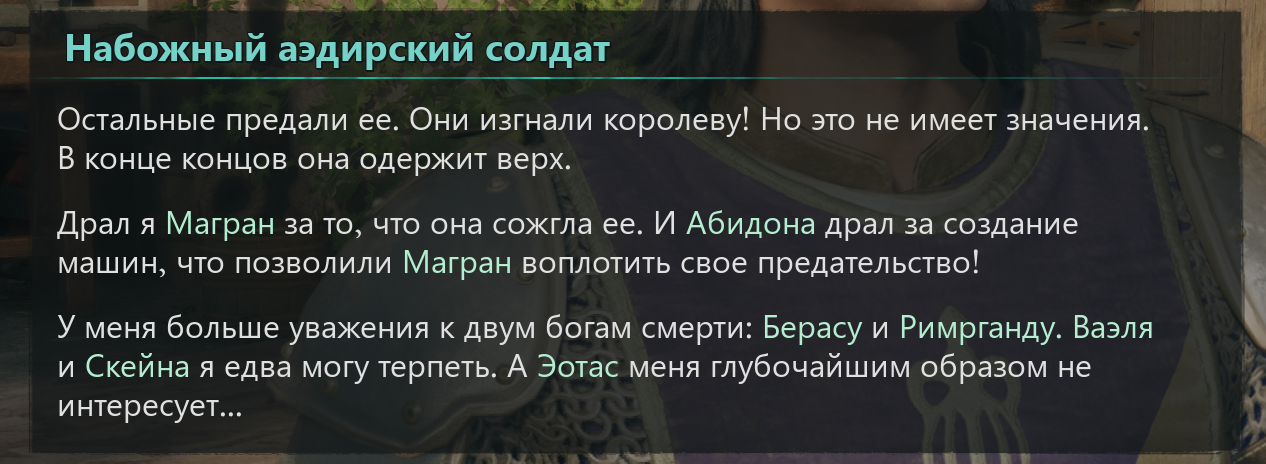 >>49580696 Ты общаешься минимум с двумя людьми, чел. Я не против текста в играх, и не против лора, истории, погружения. Но всего этого в диалогах АВ очень мало, зато очень много душных разговоров о биопроблемах или вовсе болтовни ни о чём. И сделаны диалоги так, будто разрабам платили за количество символов в тексте, а не за его содержание.