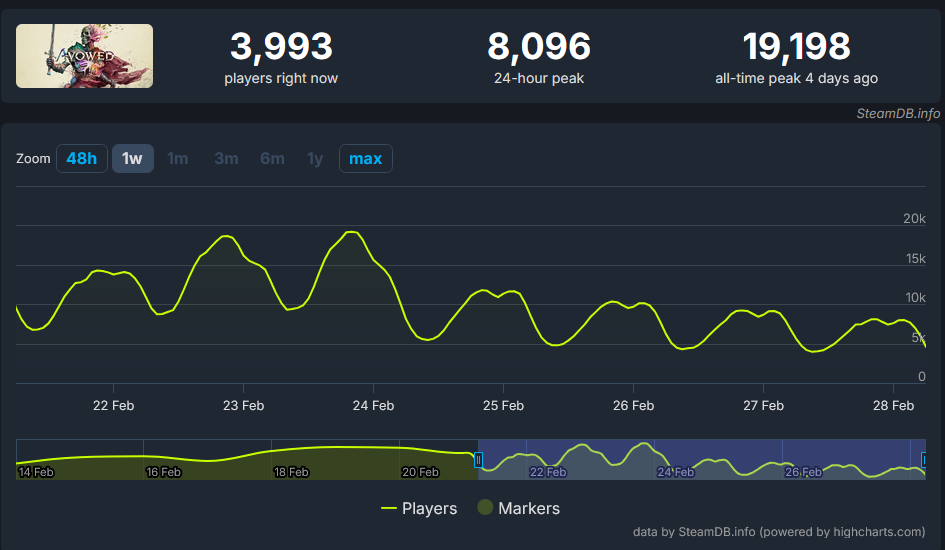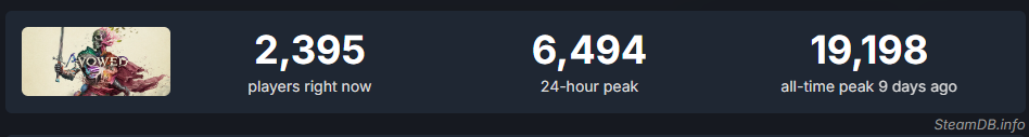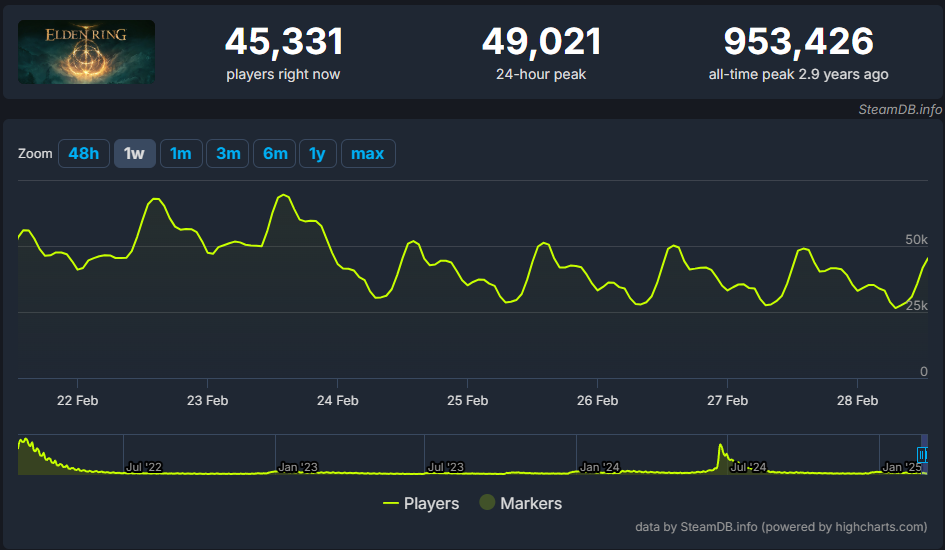 >>49581172 А при чем тут каловость игры? Ты (или не ты) же онлайн смотришь Каждая игра будет сосать, в сравнении с монстер хантером, вуконгом, калден рингом, киберпанком, у которых под миллион онлайна Ну можно сравнить с сайлен хиллом, у которого тоже в районе 20к, или с индианой