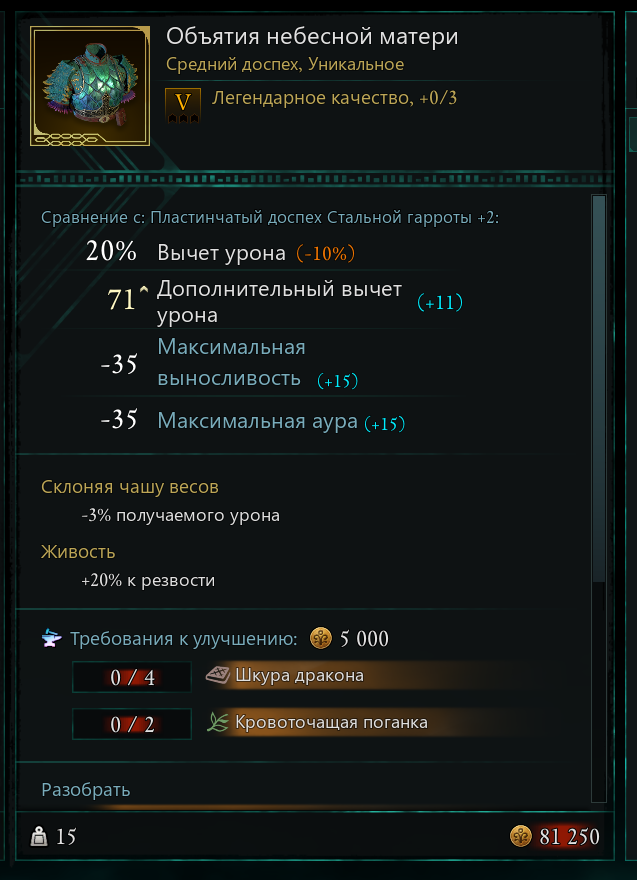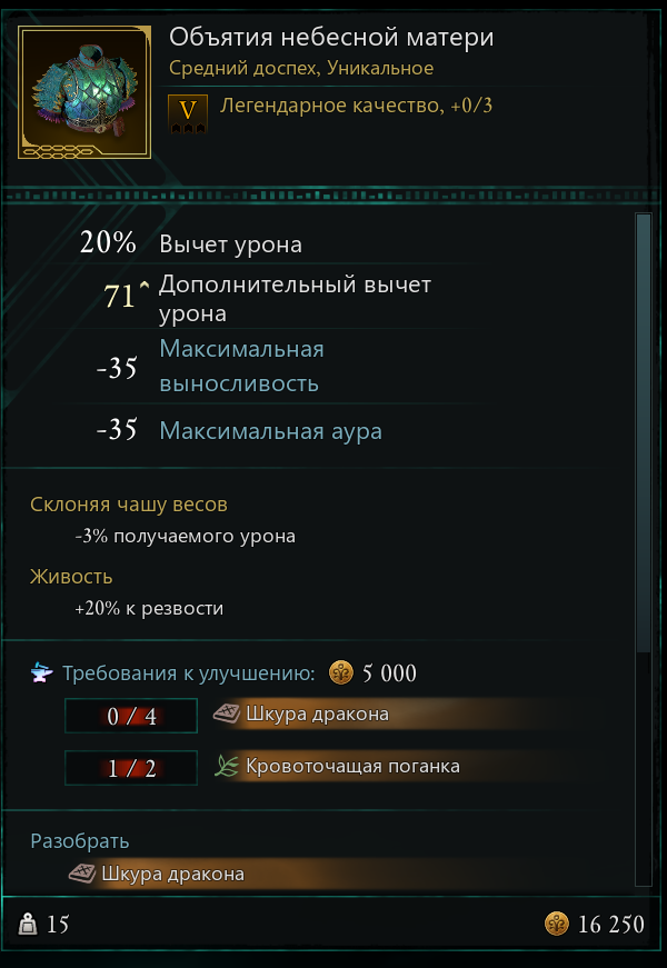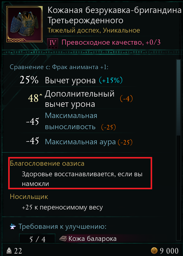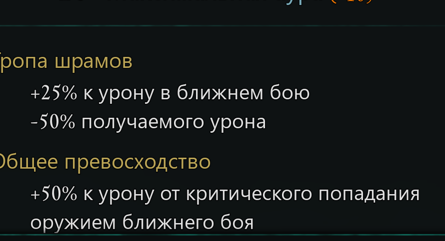 >>49584124 Вайлийской кампании, +2% физрезиста, +20% скорости перемещения. На пути проклятых в тряпках ходить сыкотно, к тому же я опытным путем выяснил, что 15% урона от спеллов по площади от магической брони не работает на спелы по площади, которые наносят урон несколько раз, например буран, шторм, или сфера пуляющая осколками. Только на единовременный урон типа фаерболлов. А бонус скорости бега вроде небольшой, но дает возможность более комфортно кайтить.