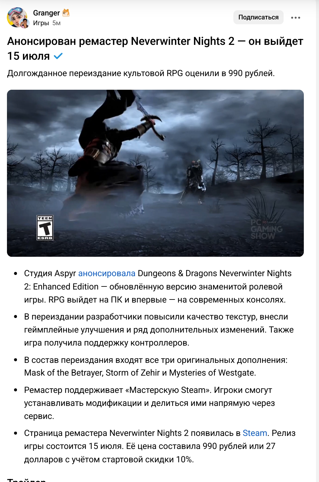 >>49578957 Идея неплохая в принципе. Но прям все мешать в кучу не хочется. Для чего-то известного свои треды есть, для ТЕС вообще отдельный глобальный раздел. Хаотичное обсуждение случайных игр в v. Поэтому тут вроде как смысла и нет пока, даже при том, что есть игры которые можно было бы упоминать, как тот же Тейнтед Грааль https://store.steampowered.com/app/1466060/Tainted_Grail_The_Fall_of_Avalon/