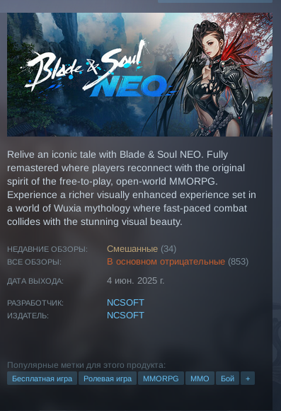 мое чисто скромное мнение нео стоило на западе выпускать лет через 5 пока эту хуйню не отполировали 9см войны бесполезной хуйни ммо никому нахуй не нужон но кореец смог геншин импакт натянуть на корейскую дрочильню спустя 6 месяцев параша окончательно сдохла не без усилий нса но на нео онлайн не больше тысячи новый сервер в стиме установил пик аж в 1.5к игроков и 400 в среднем в сутки где 350 это боты жаль конечно что игра досталась нспидорасу
