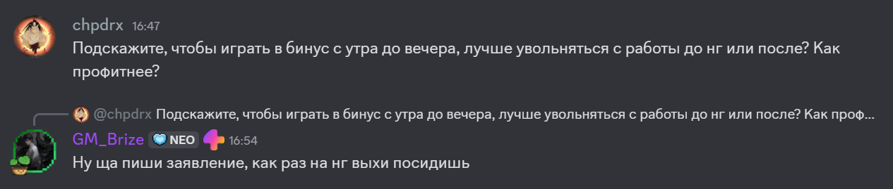 >>50457473 Мои знакомые пикнули котоёба и, охуев от ногамеса без скиллов, дропнули перед пошкой. Я пикнул кфма и задушился к изумрудке. Этот >>50457626 прав, мы уже не пиздюки, как 10 лет назад, а уважаемые старые заводчане, кокое бнс нахуй.