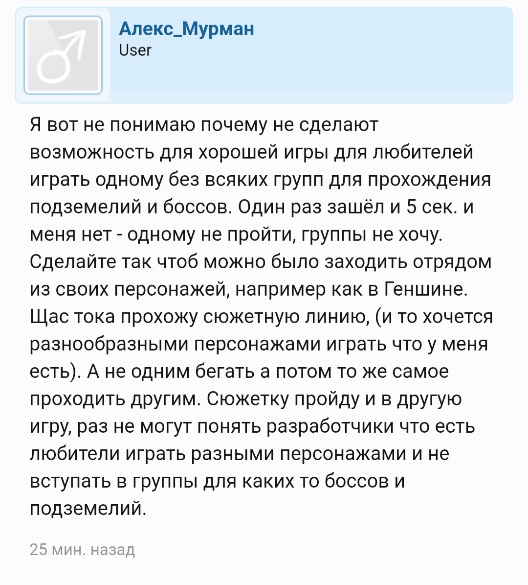 Но ведь и это еще не все! Я уже, честно, устал расписывать этот пиздец детальнее, просто отмечу что: Обязательный для всех классов и билдов баджик гриндится только с разбивки донатных костюмов. Легендарное оружие с мировых боссов надо покупать за донат валюту, при этом это слепой аукцион, я видел как такое купили за 200к(!) Покупной баттлпасс это вообще верх издевательства, за 20 евро мало того что с сундуков золото падает рандомное, так еще и синяя книжка рандомная и разбивается только на 1 фрагмент(нормальные коробки бьются на большее количество). Ну и, конечно, рандом рандомыч на рандоме везде, ни одной системы в этой параше нет с гарантией. Выбил шмотку, например? Она должна сроллить: >слоты мантры >нужные статы(2 штуки) >каждый стат должен сроллить нужную цифру >слоты под скиллы, должно быть 3 на большинстве Считать шанс получить хорошую шмотку я не буду, мне лень. Просто как данность: это тоже надо покупать за реал. Ах да, у каждого класса свои шмотки. Одинаковые во всем, кроме ограничения на использование.