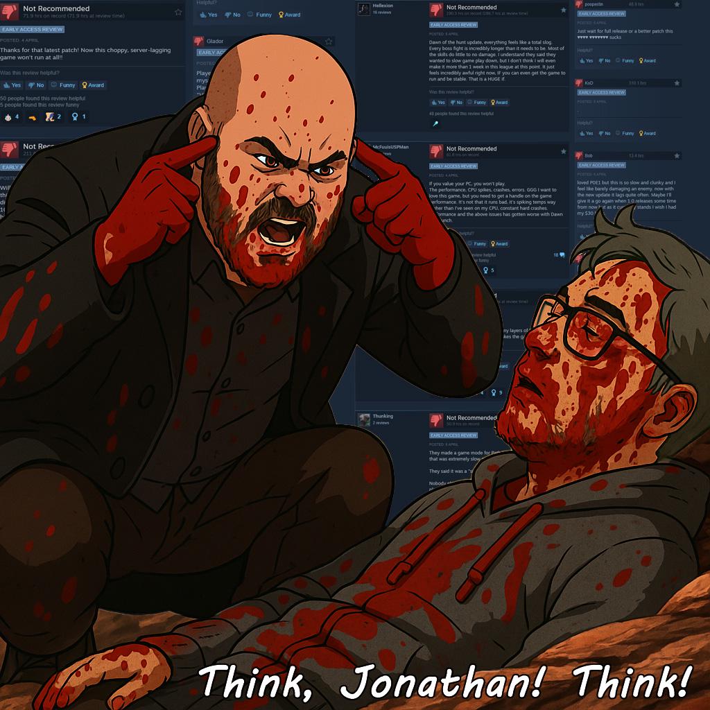 1) почему она все так же лагает? джо помню пиздел что сервера дудосят думал за пару недель пофиксил а нихуя первые карты три нормально пробежал а потом пошли лаги через пару карт опять нормально а потом опять лагии именно чувствуются что они серверные то есть тут и импут у действий и зависания на секунду две и пусть только одна тварь попрубует написать что дело в пк дырка4 и ласт эпох у меня идеально работали в 2к и уже там тем более никаких проблем с "нетворк" частью небыло 2) почему я взял в атласе все ноды на бродячих экзаилов а они как спавнились раз в сто лет и так же продолжают раз в сто лет будто нехуя на них ноды и не брал они работают вообще?