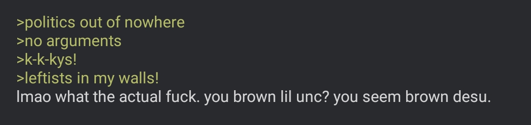>сюда все быдло слетается оно здесь и сидит просто когда че то где то в арпг случается просыпаются петросяньи личности которые думают что охуенно смешно форсить говно итт