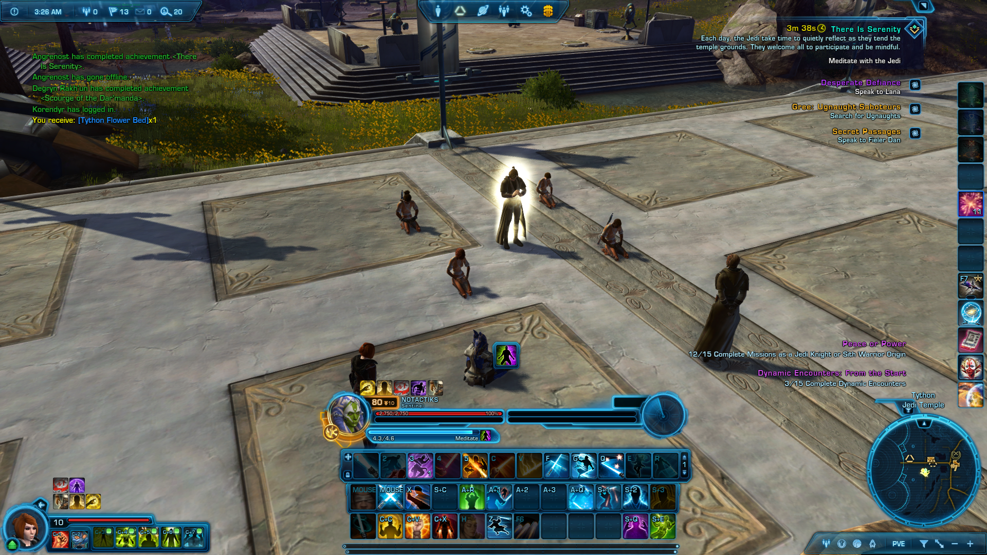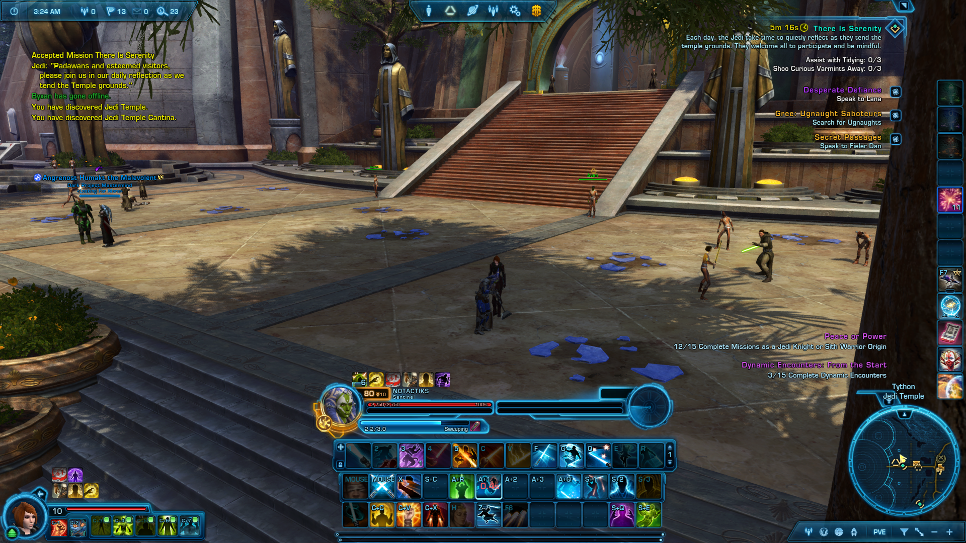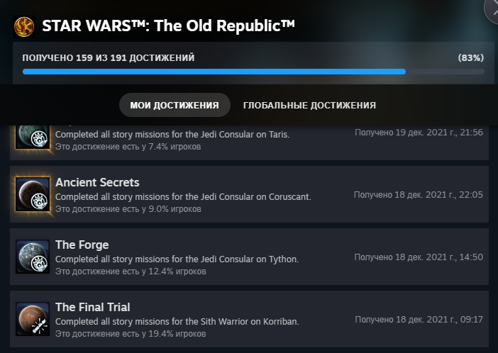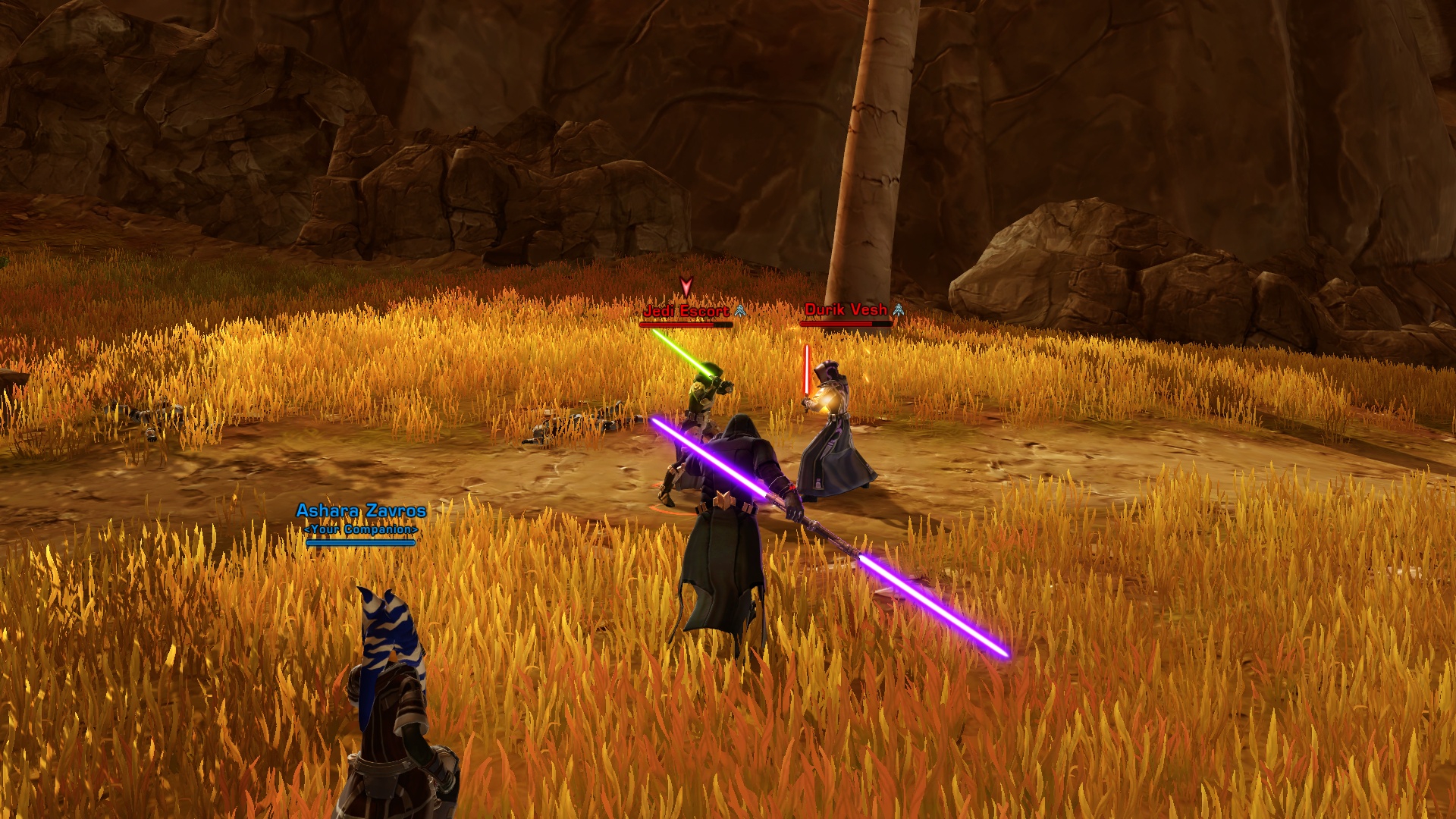 Недавно вкатилась в игру, поигрываю по 3-4 часа ежедневно по вечерам, прошла сюжетку рыцаря-джедая и ситха-воина, мне их знакомый посоветовал как самые базовые. Дальше Макеба пока не уходила, оба чара стоят на начале тени Ревана, т.к. по его же словам дальше сюжетка идёт общая у республики и империи. Вот думаю дальше имперского агента попробовать. Что не нравится в игре, так это то, что аутировать тут крайне сложно в отличии от какого-нибудь WoW, во-первых все локации забиты красными противниками, которые очень плотно друг к дружке стоят, и они все так и хотят постоянно на тебя наброситься. Второе, что не нравится, это планеты-кишки, мало где можно особо разгуляться, везде бегаешь словно по коридору. А еще скриншотики не поделать, т.к. скрываешь интерфейс, а имена всех нпс вокруг все-равно не скрываются. Да, можно это отключить в настройках, но так делать каждый раз буквально, когда хочется сделать скрин, это ну такое себе. Но в целом если, то игра реально интересная, планеты красивые, сюжетки интересные, полное погружение благодаря диалогам, мне говорили в тесо лучшие квесты в плане погружения, но тут лучше, как мне кажется.