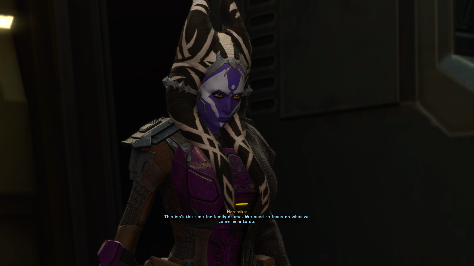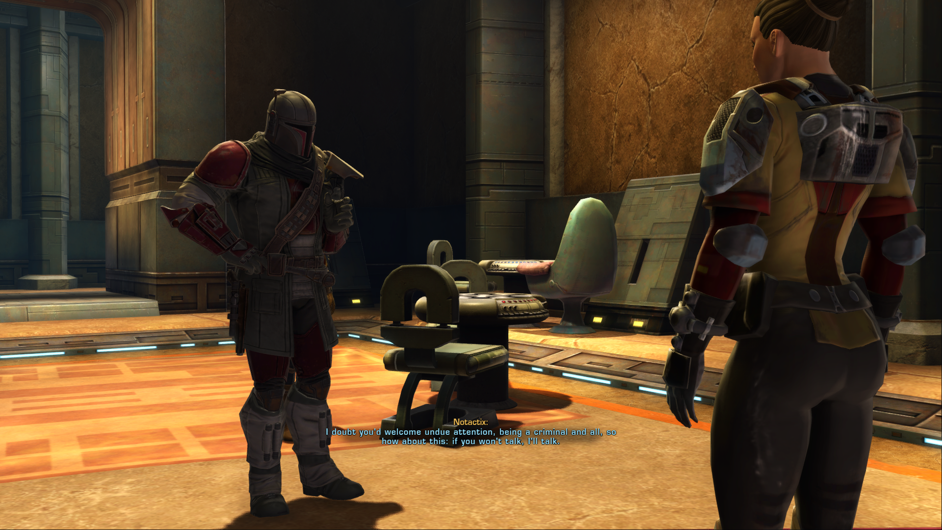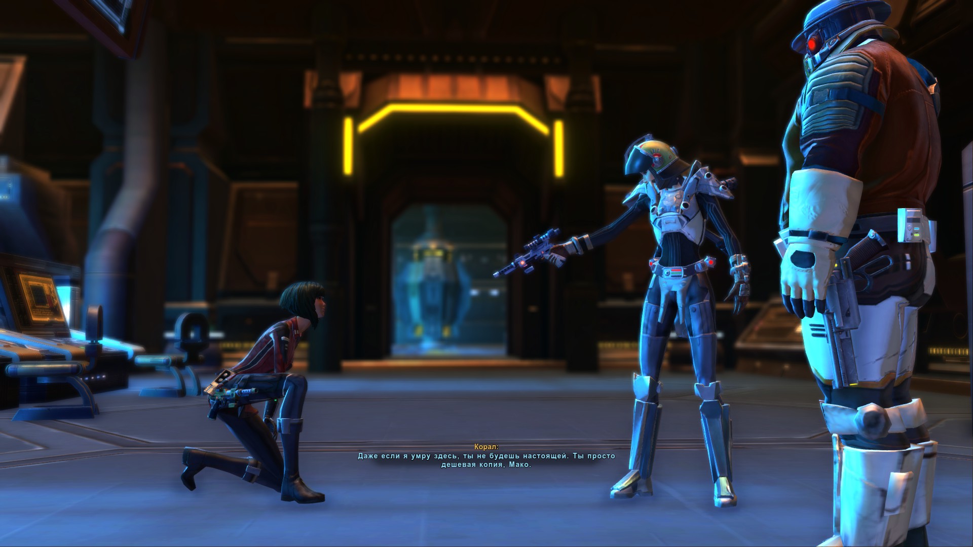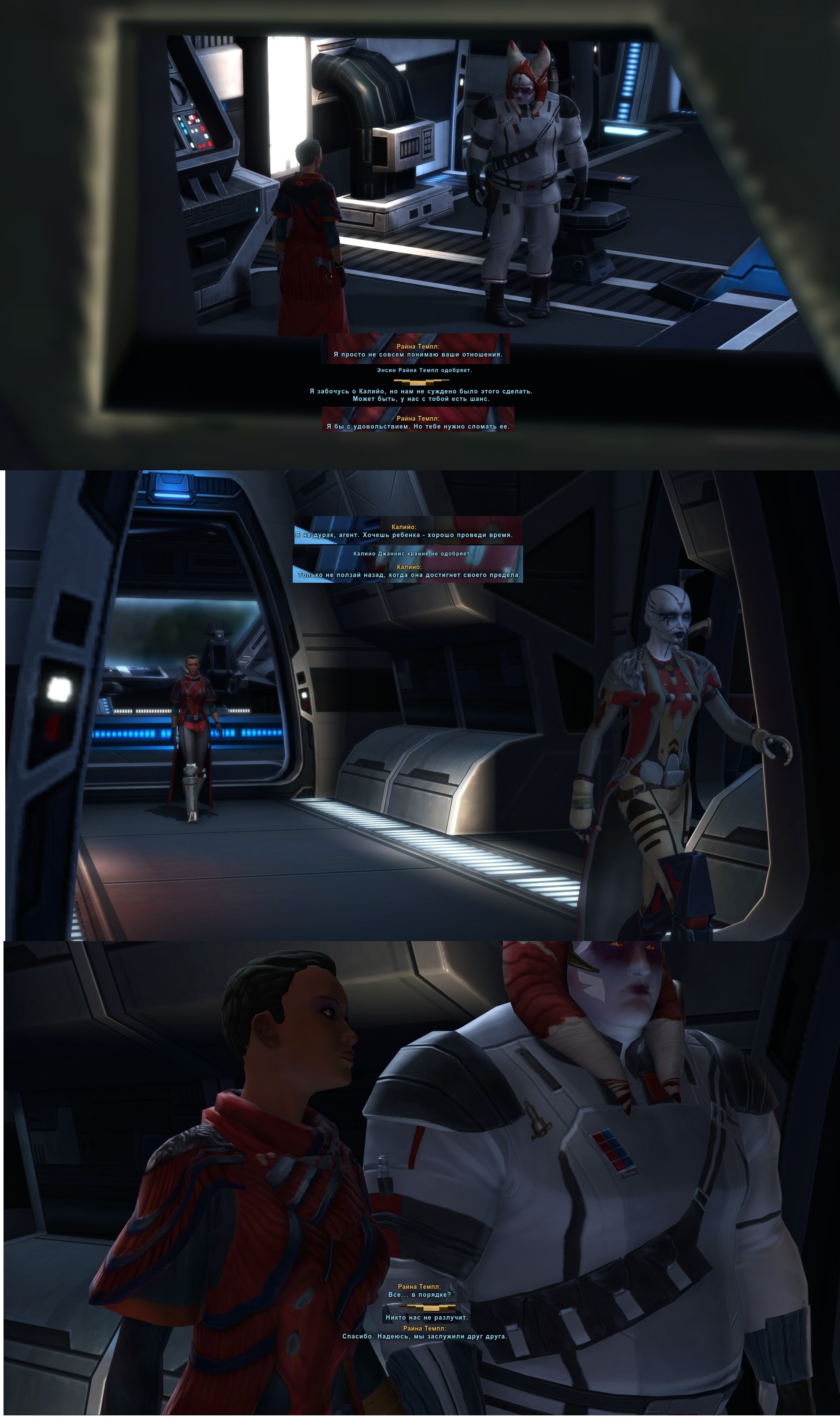 Поиграла за имперского агента, в первый раз создала женского персонажа, нет уже той силы, мощи и страха, который я получала от игры за ситха, или же уважения и теплой благодарности от игры за джедая, чувствуется больше, что я какая-то маленькая сошка, подсос какой-то, и что раздавить меня может чуть ли не любой вышестоящий, а по сравнению с теми двумя персонажами, в иерархии я реально где-то почти на дне нахожусь. Но сюжетка интригует, Дарт Джейдус интересный персонаж, правда т.к. я играю с русиком, перевод у имперского агента куда хуже, чем у ситха или джедая, прям ощутимо видится промт какой-то, которого я почти и не замечала за прошлые два класса. Посмотрим, что да как дальше будет. Алсо, у меня скриншотер нвидии сломался по какой-то причине и делает скрины игры масштабируя экран в 100 раз и снимая какой-то правый угол игры.