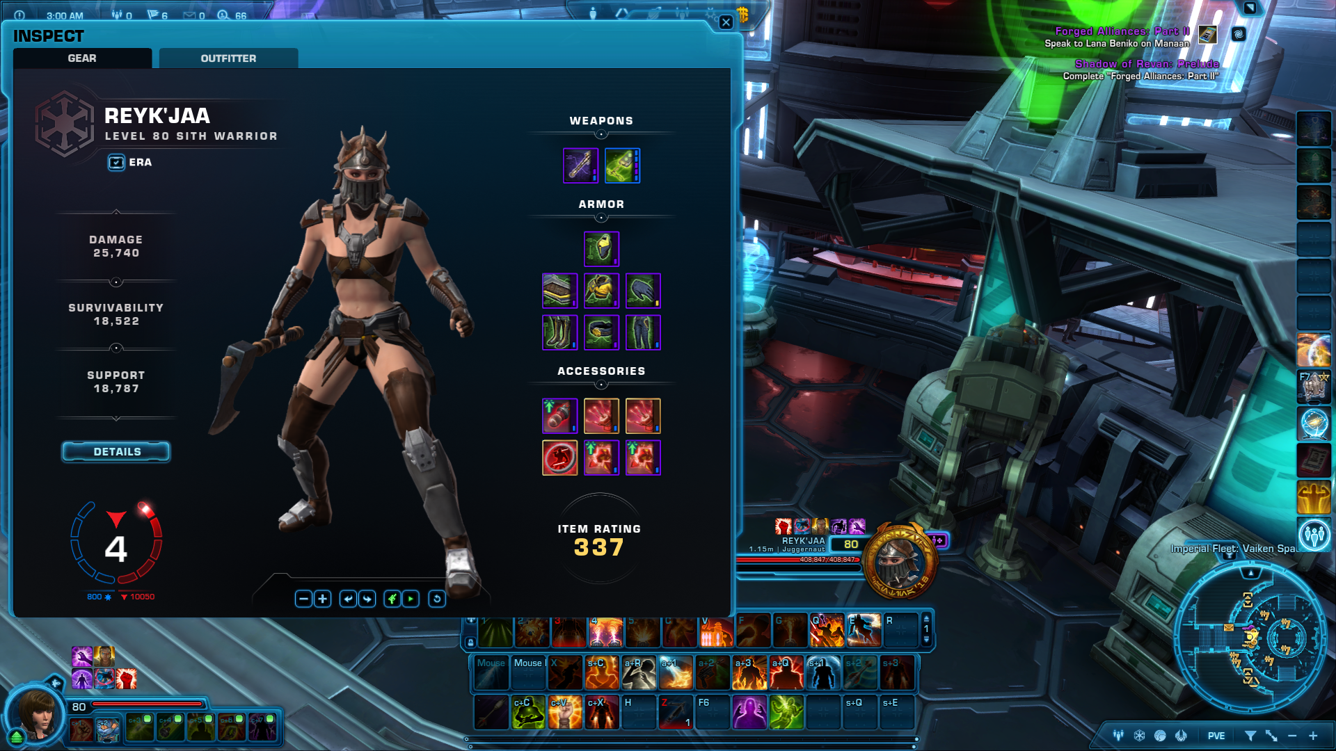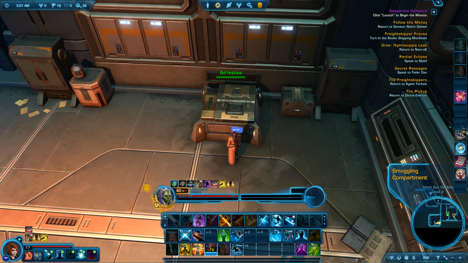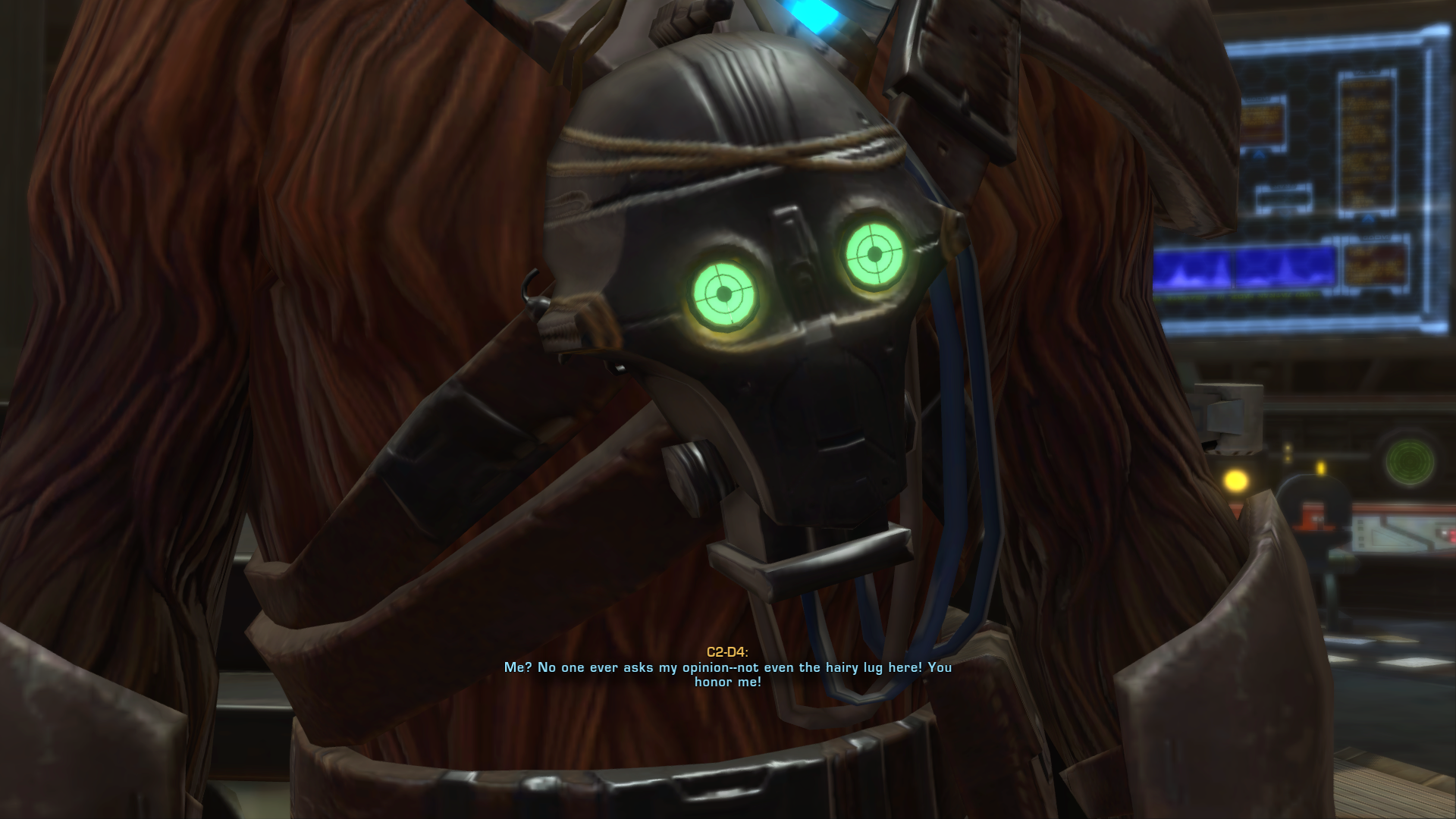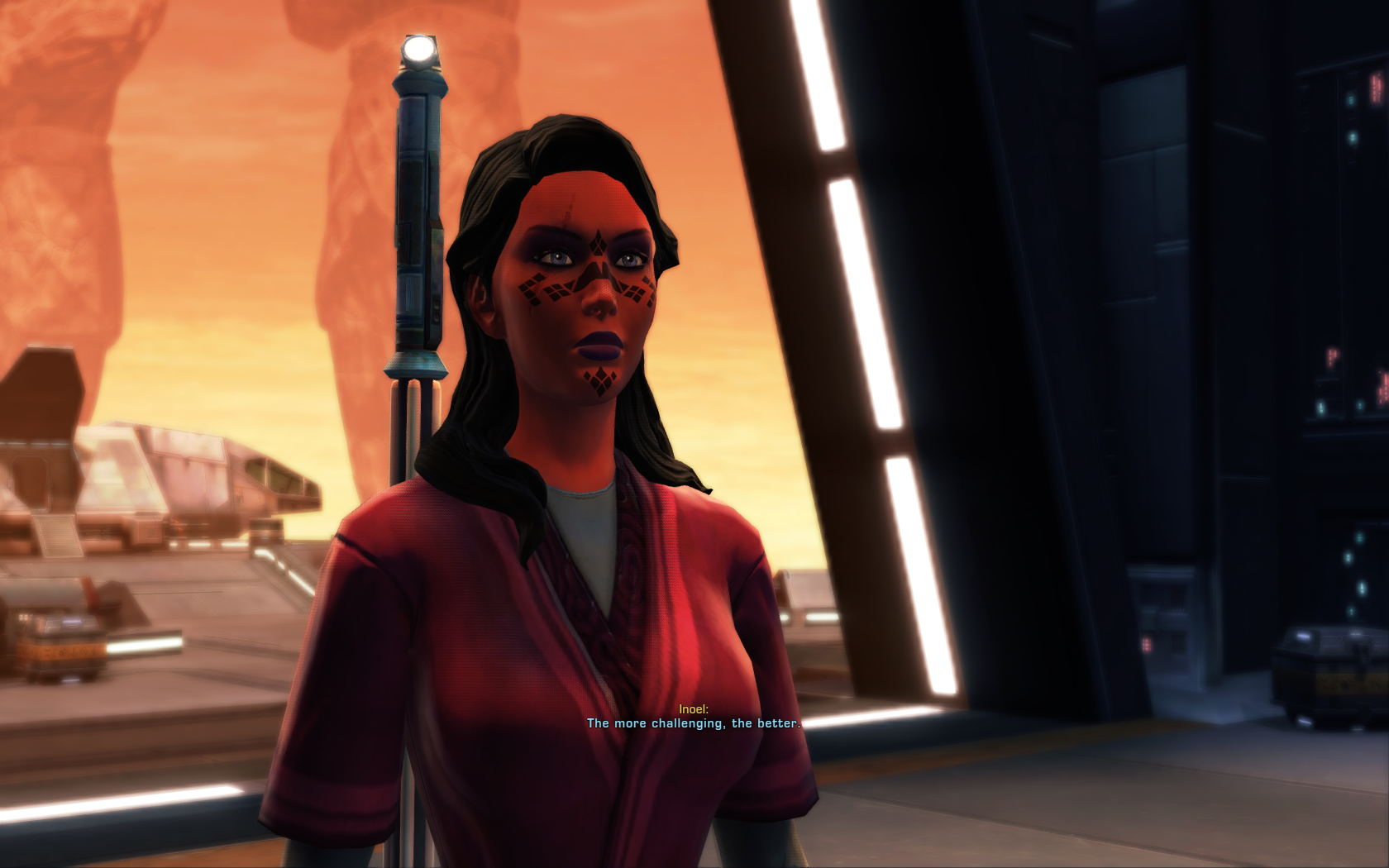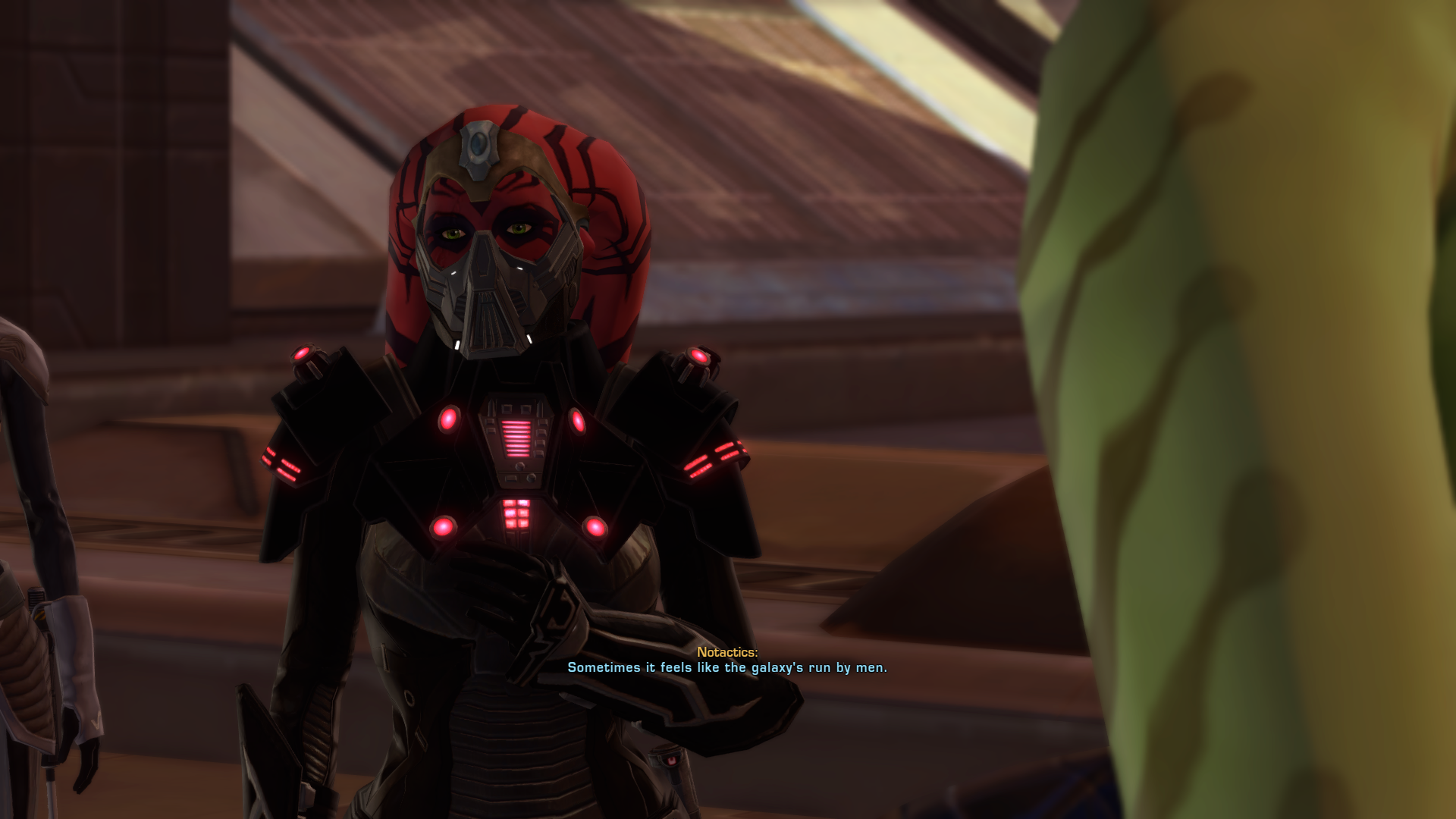 Поиграла за имперского агента, в первый раз создала женского персонажа, нет уже той силы, мощи и страха, который я получала от игры за ситха, или же уважения и теплой благодарности от игры за джедая, чувствуется больше, что я какая-то маленькая сошка, подсос какой-то, и что раздавить меня может чуть ли не любой вышестоящий, а по сравнению с теми двумя персонажами, в иерархии я реально где-то почти на дне нахожусь. Но сюжетка интригует, Дарт Джейдус интересный персонаж, правда т.к. я играю с русиком, перевод у имперского агента куда хуже, чем у ситха или джедая, прям ощутимо видится промт какой-то, которого я почти и не замечала за прошлые два класса. Посмотрим, что да как дальше будет. Алсо, у меня скриншотер нвидии сломался по какой-то причине и делает скрины игры масштабируя экран в 100 раз и снимая какой-то правый угол игры.