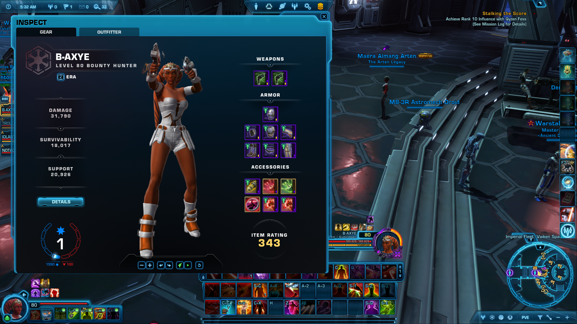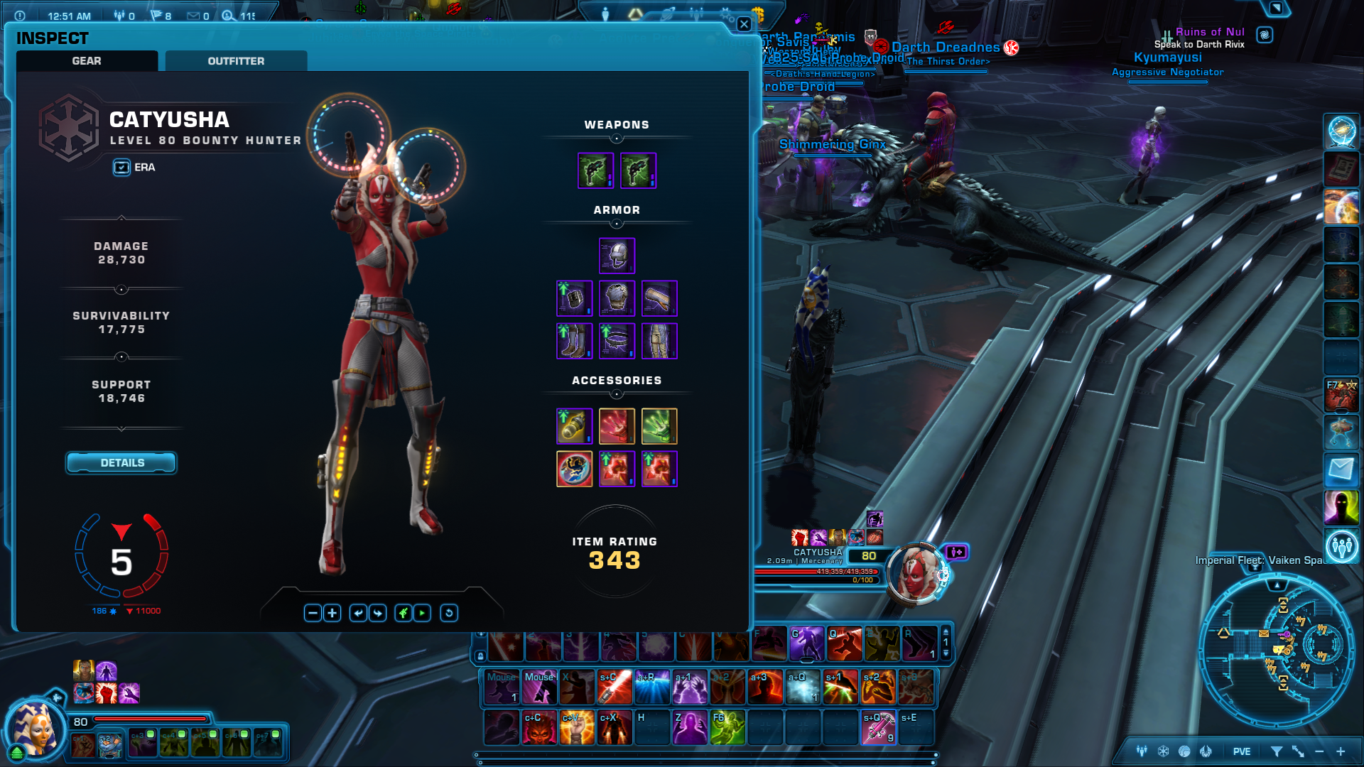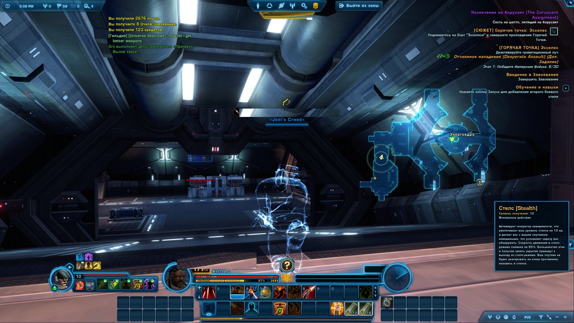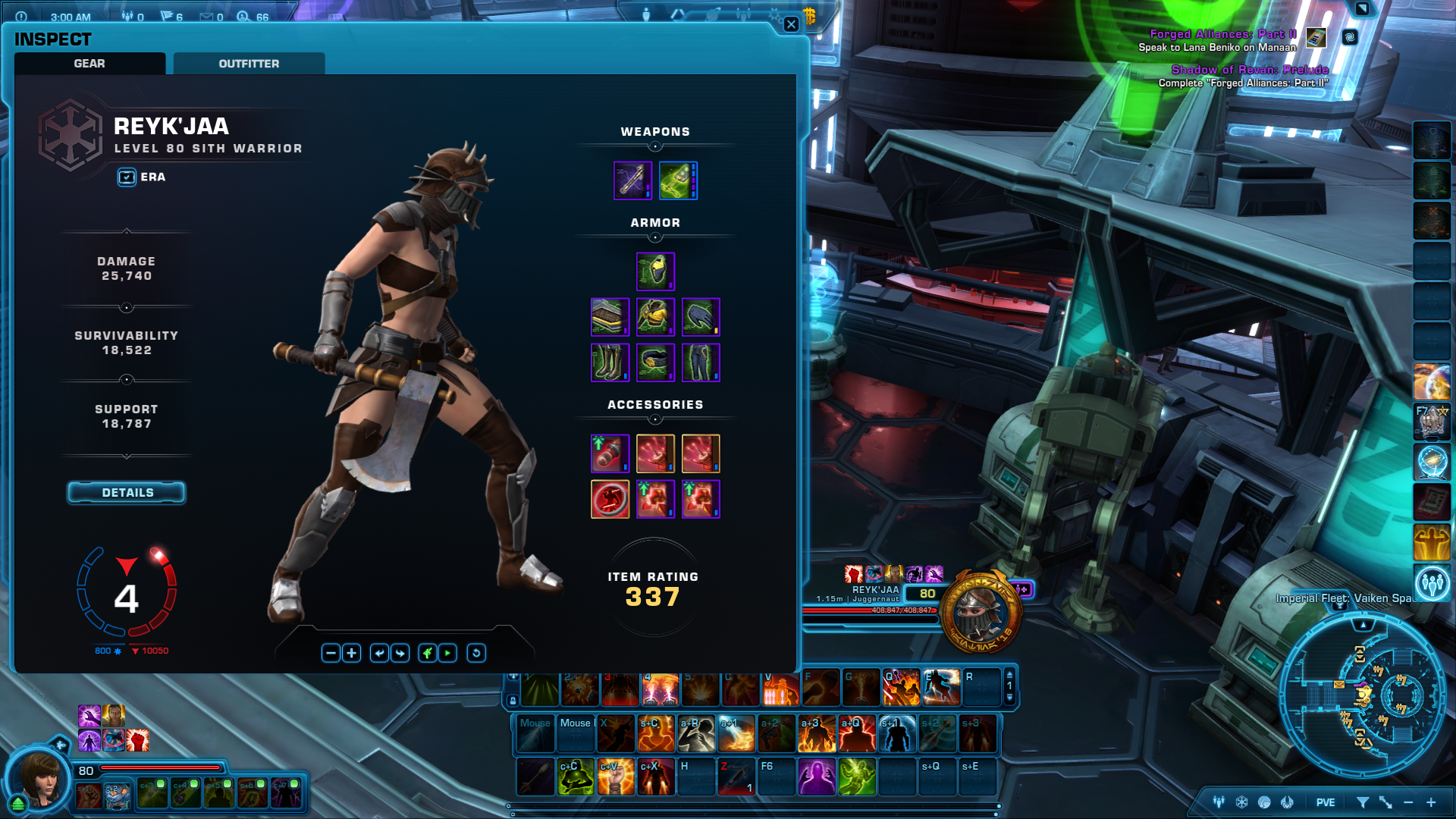 Поиграла за имперского агента, в первый раз создала женского персонажа, нет уже той силы, мощи и страха, который я получала от игры за ситха, или же уважения и теплой благодарности от игры за джедая, чувствуется больше, что я какая-то маленькая сошка, подсос какой-то, и что раздавить меня может чуть ли не любой вышестоящий, а по сравнению с теми двумя персонажами, в иерархии я реально где-то почти на дне нахожусь. Но сюжетка интригует, Дарт Джейдус интересный персонаж, правда т.к. я играю с русиком, перевод у имперского агента куда хуже, чем у ситха или джедая, прям ощутимо видится промт какой-то, которого я почти и не замечала за прошлые два класса. Посмотрим, что да как дальше будет. Алсо, у меня скриншотер нвидии сломался по какой-то причине и делает скрины игры масштабируя экран в 100 раз и снимая какой-то правый угол игры.
