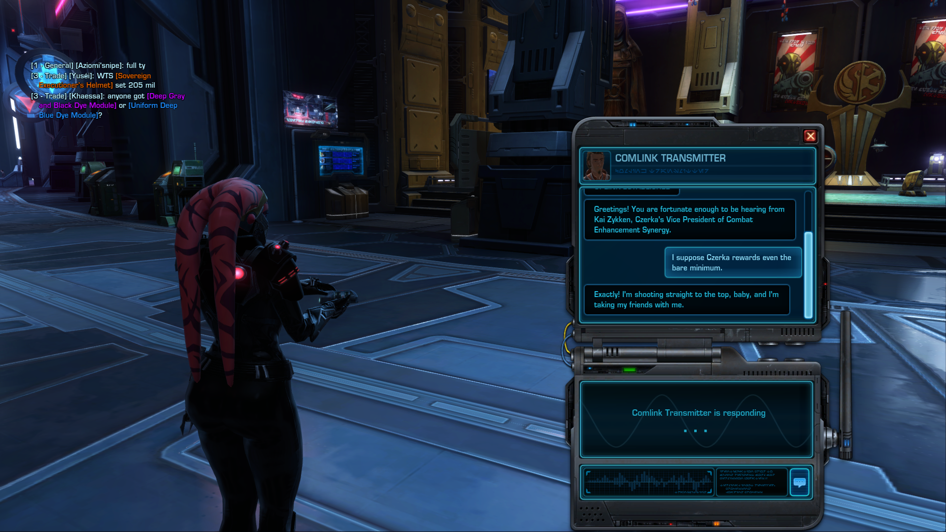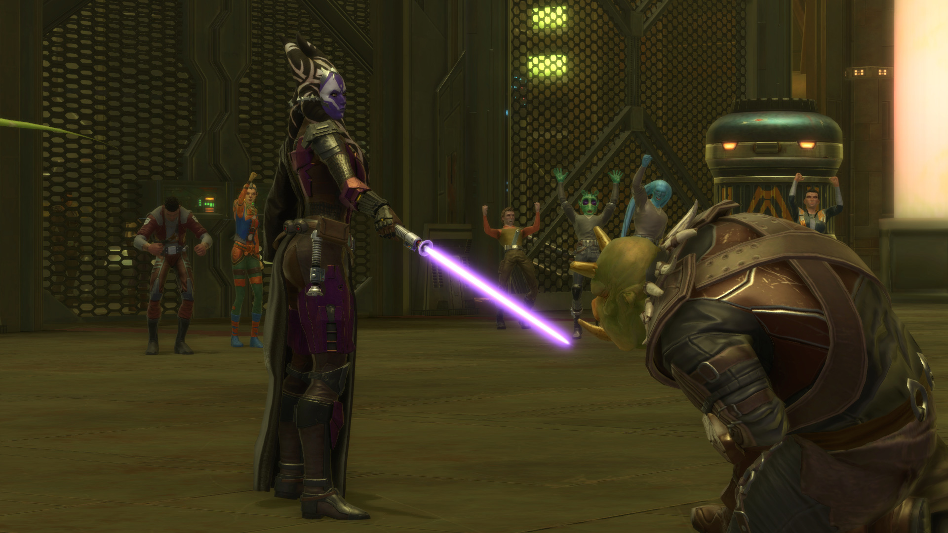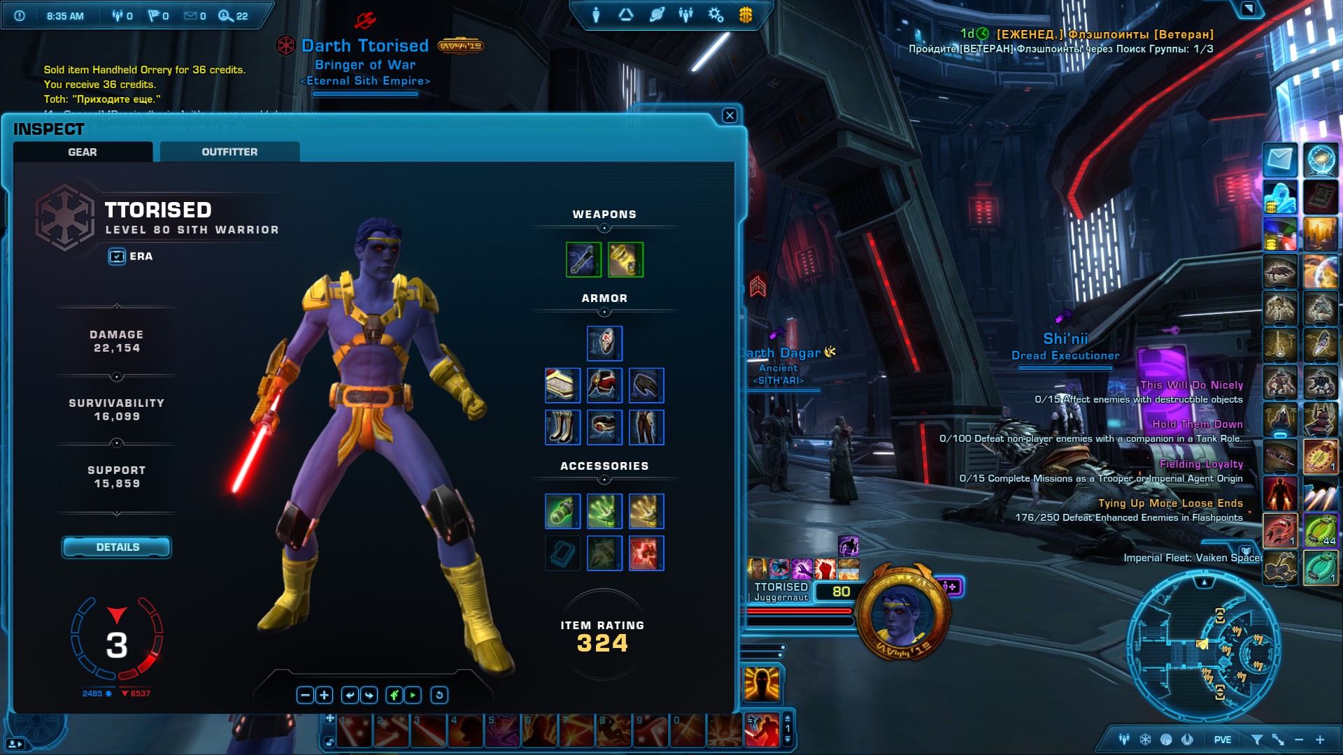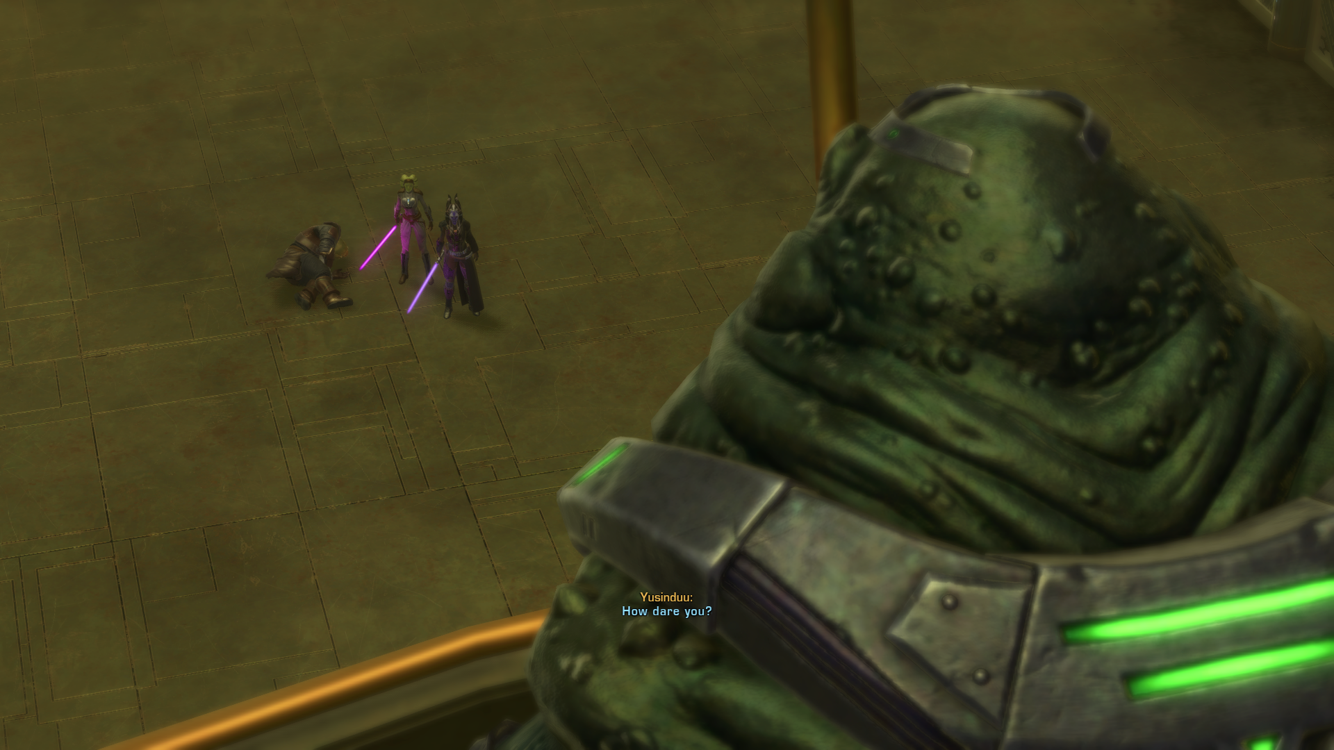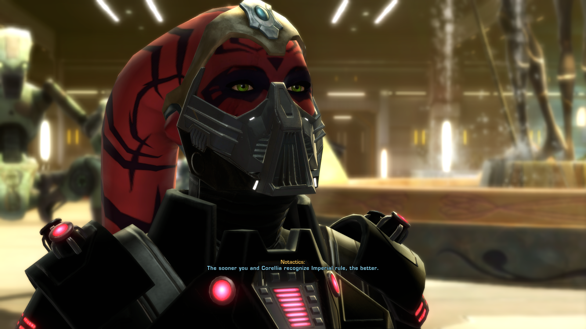 Очень сложно играть за ситха инквизитора после ситха воена. Воен с такими прикольными цепляющими угрожающими интонациями говорил, шутки даже иногда смешные шутил, а актёр озвучки инквизитора унылым голосом чота бубнит, совсем не нравится.