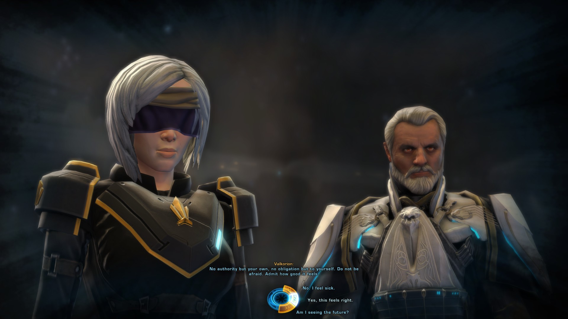 Ну вообще нейтрального Нокса отыгрывать куда лучше, очень адекватные варианты. Вот у джедая школоивельские выборы реально обычное эджлордовское, а у империи как-то все нормально с этим