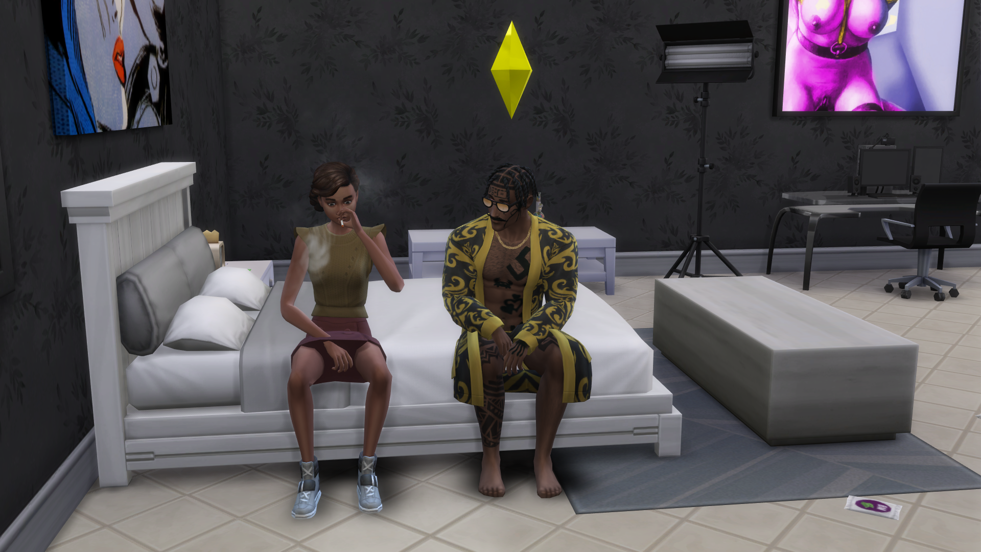Лол, только сейчас дошло, что идея "пусть хоть мой сим поживет лучше, чем я" не работает, но сценария из шапки у моих центральных симов вообще никогда не было, вечно заняты хуй знает чем и ебут мимошлюх. Зато у составляющих массовку нпс все прекрасно, ведь они - фон игры, а фон раздражать не должен. Иначе... это все равно что в квартиру обои из "декора на максимум" наклеить и такими же всратыми безделушками завалить. На любителя.