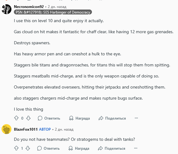 А кто-нибудь играет безоткатку на жуках? Такое ощущение, что в ней вообще нет смысла на них. На альфа командеров и плевак патронов не напасешься, чарджеров и импейлеров можно просто термиткой убить, гнезда издалека тоже особо не по убиваешь, в отличие от фабрикаторов. Только титаны и остаются. Но их мало и на них стратагемму потратить не зазорно.