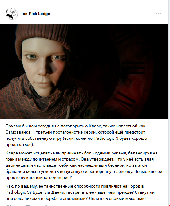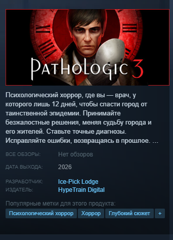 >>50357753 >ноунеймы из триосказа делают 500к продаж своей поделки на один вечер Их игра понятно называется и не прикидывается сиквелом-триквелом. Нормис увидел такую - о, приольная игруха - нажал купить. А что подумает нормис, зайдя на страницу игры под названием Pathologic 3?