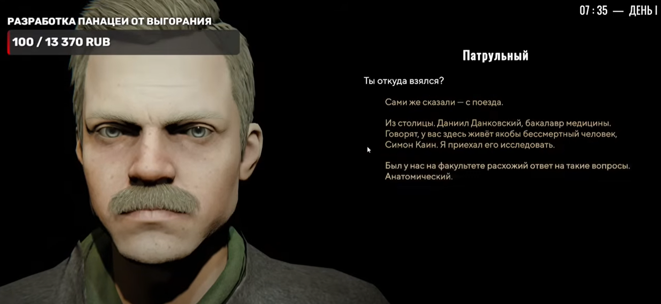 Я в старом море вообще не читал диалоги просто скипал, просто дайте задание куда то пойти где что то принести/кого то найти и рандомно тыкал ответы. Мои любимые персоонажи это ворона и манекен, один чернушно шутит и подъебывает второй откровенно и почесному. Сеттинг с одной стороны интересный, казахи с их законами степи зачетные, но вот вся вот эта богемная блядва из книг толстого-достоевского откровенно лишняя, а вот эта хуйня с многогранниками вообще невнятная, ладно бы если бы там какая то школа была, я бы понял дилему мол либо подрастающее поколение образованное и пизда традициям, либо нахуй это образование растим скотоводов как обычно. И почему тут вообще есть дилема если чума это как раз следствие шаманских традиций приводящих к антисанитарии, в то же время повсемесное образование не значит что традиционная отрасль придет в упадок, наоборот из крови можно гемотоген делать, из отходов производства делать прибыли. Но разве господину Кабанову это надо? Нахуй не надо, ему нравится что он барин а в бараках малограмотные крепостные мамбеты работающие за кусок телятины. Где концовка с отрезанием паразитических правящих кланов от управления городом? Нет такой. Получается вся эта ебучая политота сводится к тому что что бы избавить бордель от сифилиса надо выкинуть из него либо все стулья либо все кровати.