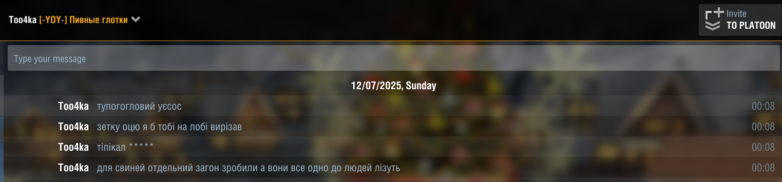 >>50529882 Бляяяя. Я люблю Z писать, когда в чате в бою укры срут. Поджег зверя, все правильно сделал. Ты кстати можешь скрины тоже отправить, он тебе угрожает и оскорбляет, это минус чат 100%