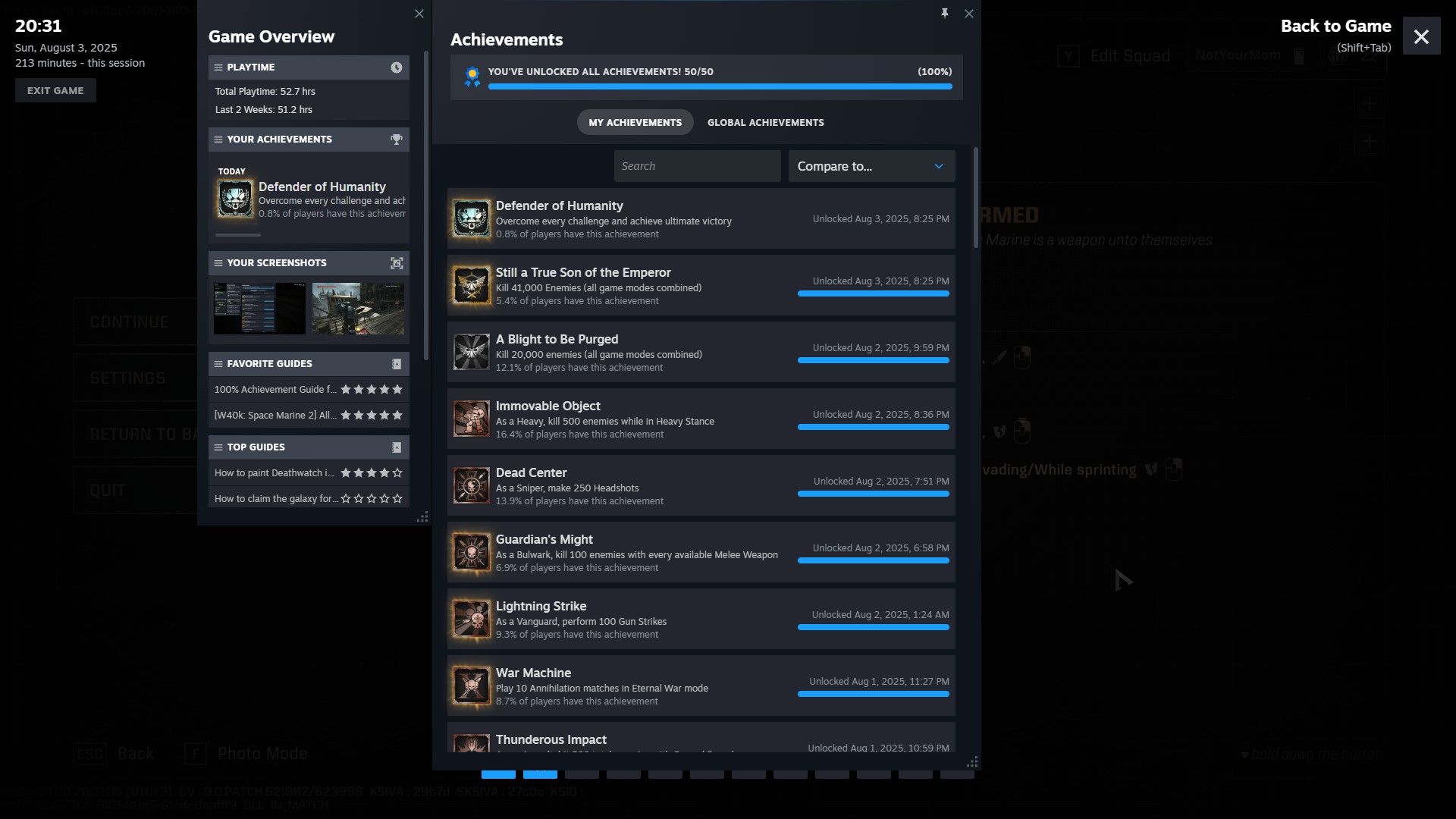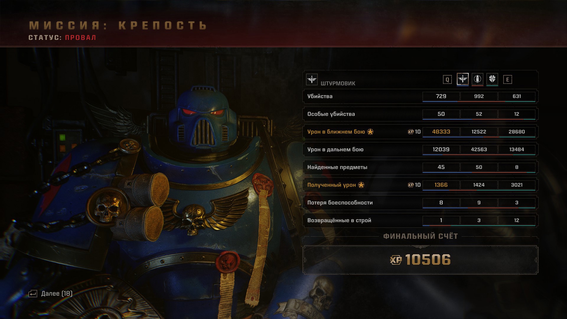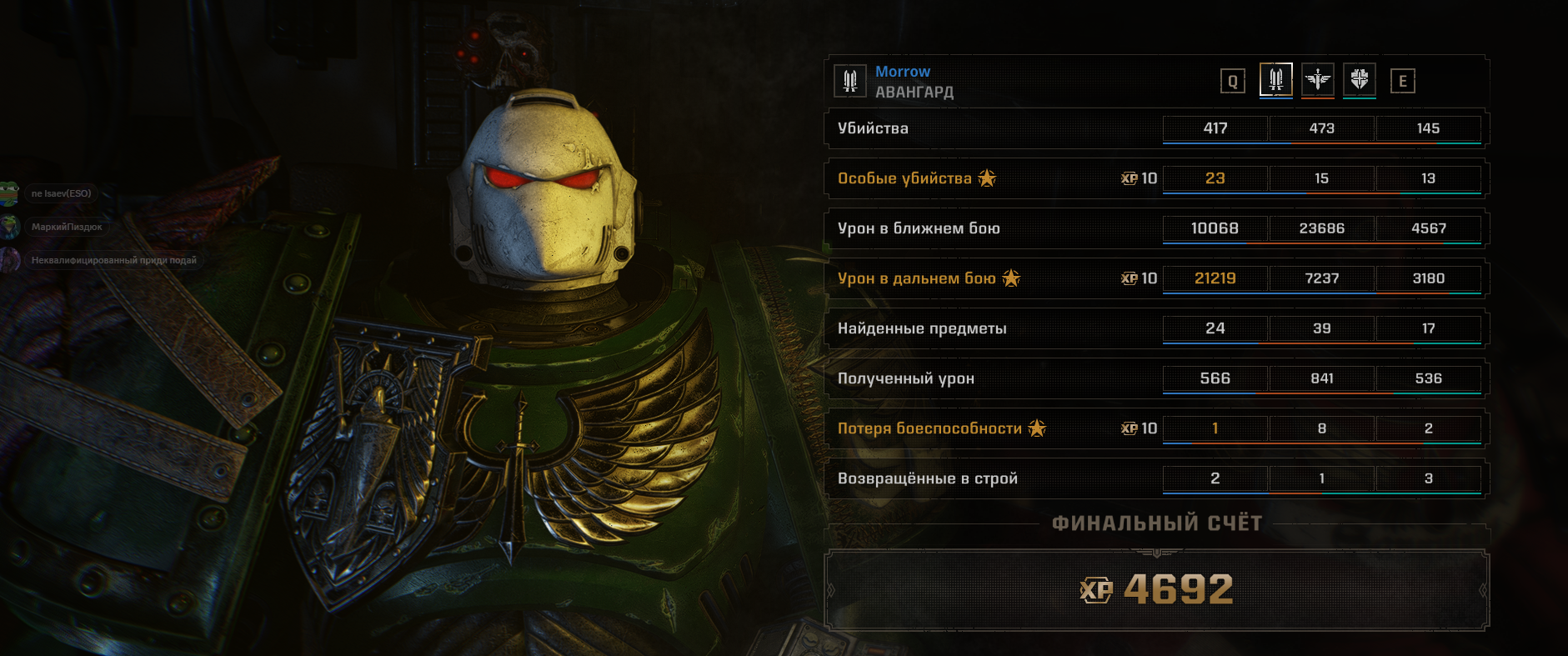 Выбил платину, дрочь, конечно, но терпимо, я думал дольше займет. У меня на 40 часах не было даже еще 20к киллов, я думал еще часов 40 уйдет на 41к килл. Но, к счастью, миссия по Тирану Улья меня выручила. За это время я взял первый престиж на тактичку и докачал до 23го хеви, остальные класссы брал чисто для выполнения ачивок и мне они не особо понравились. Операции довольно скучные, на самом деле, но их много, плюс тиммейты часто исполняют пиздец, вводят элемент неожиданности. ПВП было повеселее, но там как-будто вообще смысла играть нет, он сделан так, для галочки. 3 малюсенькие карты на 12 человек и 3 режима, на этих же картах. Плюс, хаос как сторона не представлена по факту, там даже нельзя броню кастомизировать. Осада - это типичный тавер дифенс, но нормально его не поиграть, так как все съебываются после первого сектора, тут примейдом нужно. Вообще, по хорошему играть бы с друзьями, но это для всех коопных игр так. В целом, как-будто бы можно было бы еще поиграть, но не думаю, что вернусь. Может с новыми обновами буду потихоньку заходить поигрывать, но пока, думаю, хватит.