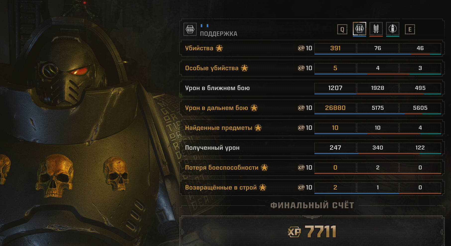Ну чтож, наконец я добил до макс левела макс престижа последний класс. Потратил на все это дело 260 часов, в принципе, если бы не стратагемы, я бы таким заниматься не стал, но раз уж мне все-равно каждый день надо заходить выбивать эти акколады - то почему бы не прокачать все классы. Все пушки уже прокачены давно. По классам я могу сказать, что в моем топе она расположились следующим образом тактичка>хеви>вангард>буллварк>снайпер>ассолт Причем, и буллварк и снайпер у меня очень тяжело шли, но потом я их распробовал, что наызвается. Буллварк как-будто бы мастхев в пати, очень сильный саппорт. А вот ассолт это пиздец какой-то, я его качал последним, уже со всеми прокачанными пушками и я вообще не понял его прикола. Его абилка какая-то багованная как-будто, не всегда наносит урон при приземлении, плюс у него есть несколько перков на додж джампаком, но это вообще юзлесс хуйня, ее сбивют любой тычкой. Обычный перекат лучше, удобнее, привычнее и не тратит заряд абилки. До нового патча буду отдыхать, буду заходить чисто пофармить стратагемы, а после патча, я думаю, подрочу новую операцию и нафармлю на новое оружие за акколиды. Как я понял, до нового года или февраля ничего нового в плане оружия/классов не будет, а с февраля уже снова пойду жестко фармить и качать техмарина. Игра неплоха, есть какие-то моменты, которые я не особо понимаю или принимаю, но она меня очень затянула, я не ожидал.