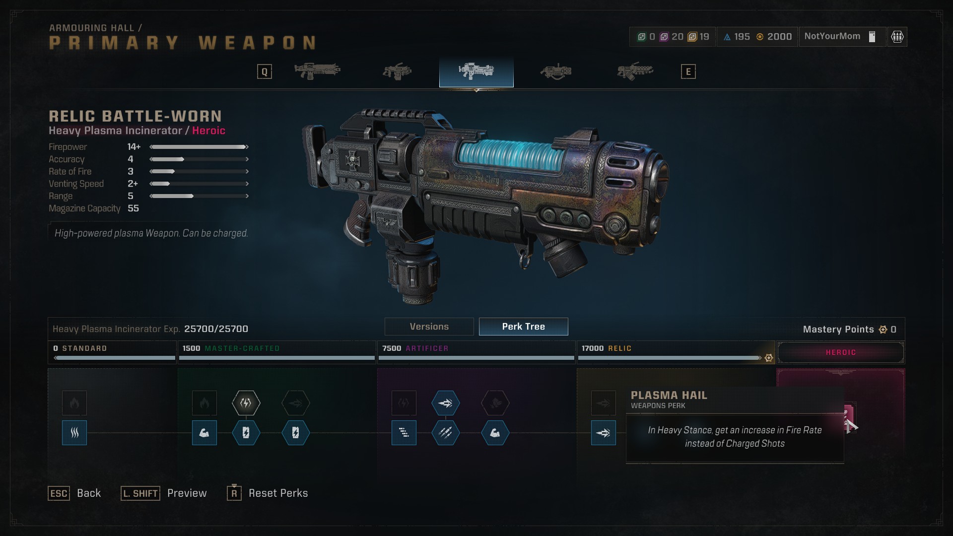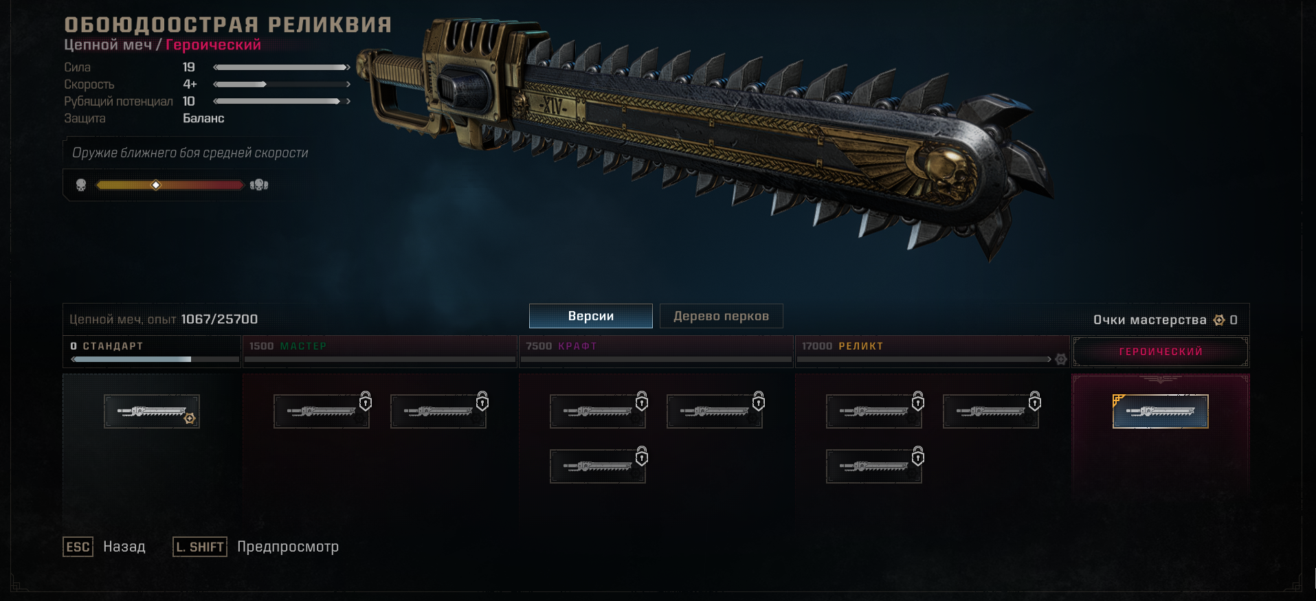 У меня одного героическое оружие невозможно использовать в тренировочной комнате? Зашел туда с комбимельтой, но в руках самый первый болтер из этого древа. С цепным мечом так же.