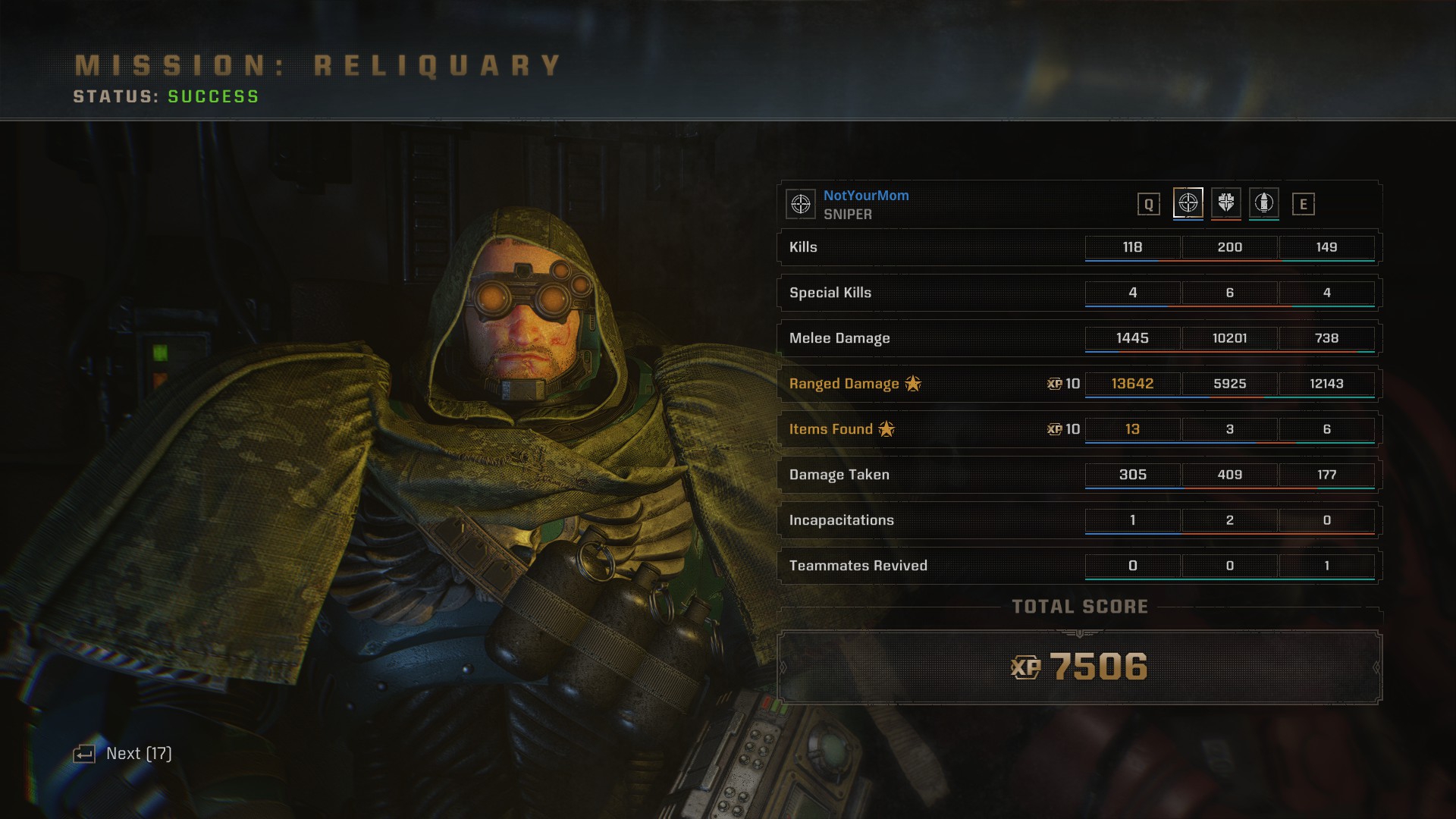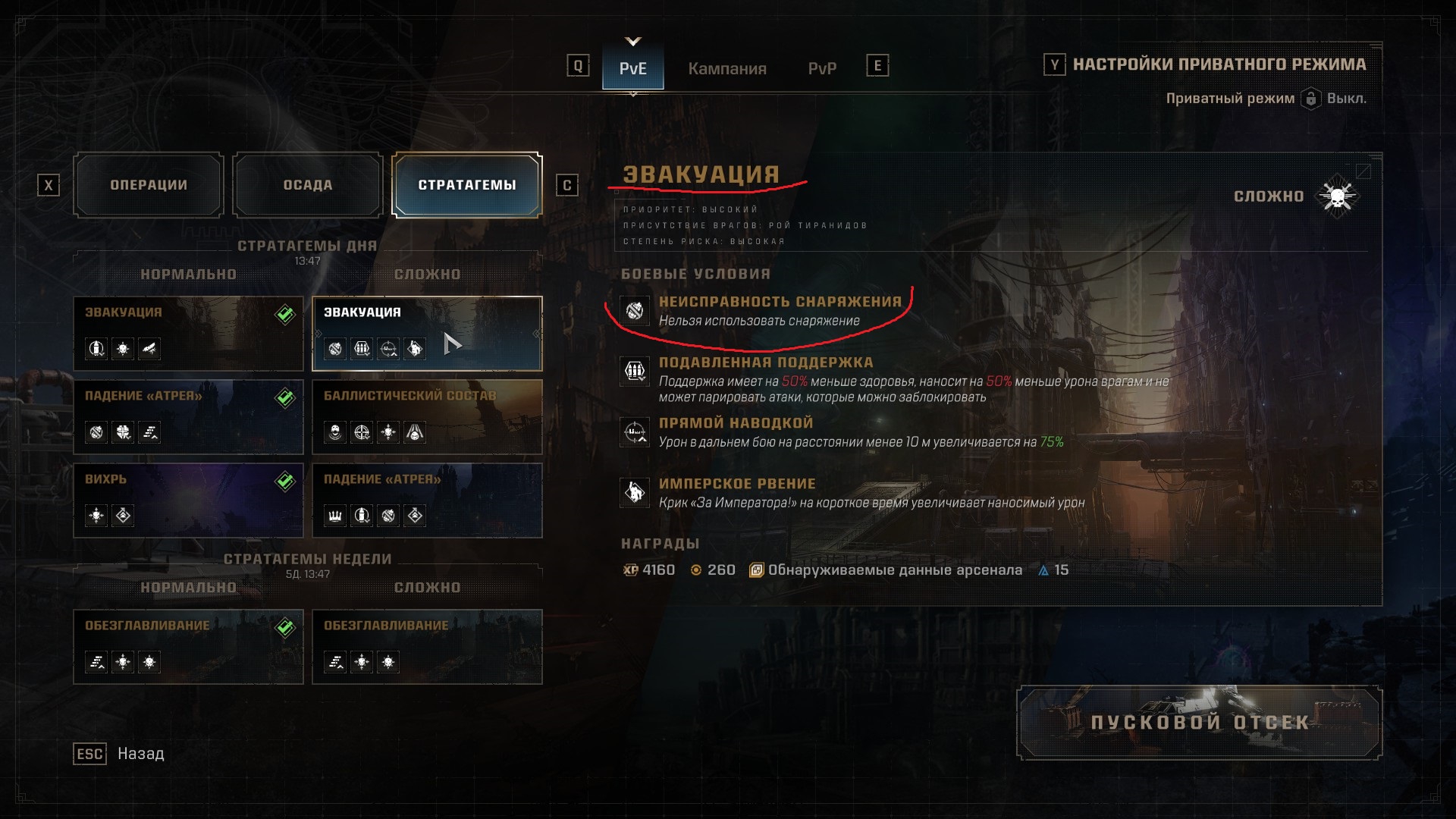 Это было на удивление легче, чем я думал. Снайпер щелкал боссов за 3 секунды просто. А вот недельную стратагему с таким модификатором я дальше первого же босса не проходил. Сложнее всего было объяснить челам, что хилить вунды и добивать экстремисов нужно на расстоянии.
