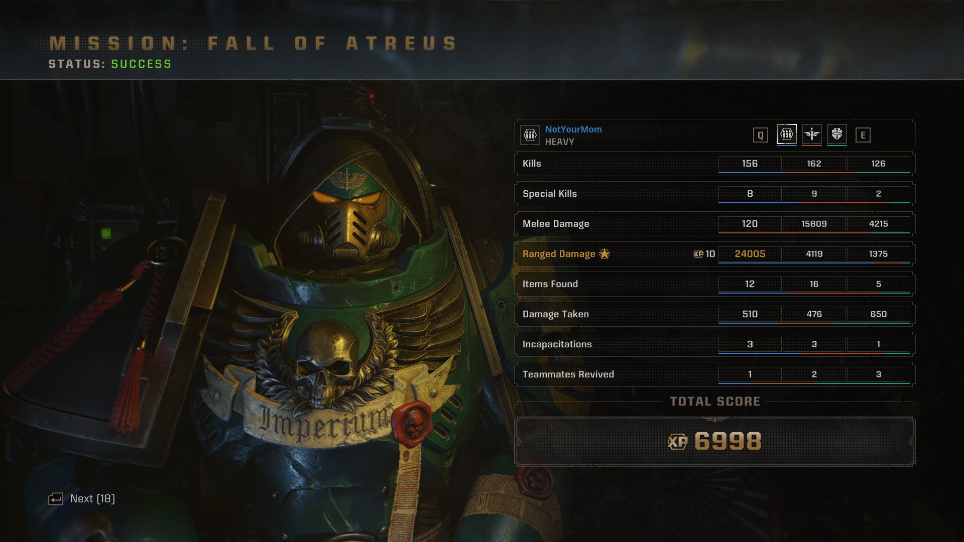 Ебать хевику дали оружие с парированием теперь это класс без слабых сторон. Не успел еще сам попробовать так как игрался со снайпером героическим - на абсолюте оч тяжело делать постоянно хедшоты тиранидам, хаосу вообще гиблое дело ну я анскил