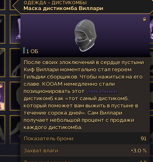 Кто разбирается в мелочах, этот захват воды это про инструменты коса/серп или про регенерацию воды в самом костюме. Тоже касается пассивки из средней ветки планетолога. Типо если приодеться в жыр, то пить кал/мочу можно шустрее или это все же про сбор росы.