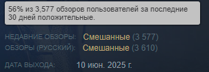 >>50178785 >Ты рил читаешь отзывы стима в 2025? Тащемта, я только пару раз проебался с обзорами, и было это еще лет 6-8 назад, когда я неглядя купил БАРОТРАВМУ и BOMBER CREW, поведясь на КРАЙНЕ ПОЛОЖИТЕЛЬНЫЕ , а оказалось это такой душнейший и кривой кал, которые еще поискать надо. Сегодня, если положительных обзоров <80%, я максимум оставляю игру в списке желаемого, до лучших времен. А крайне положительные игоры беру только изучив отрицательные обзоры