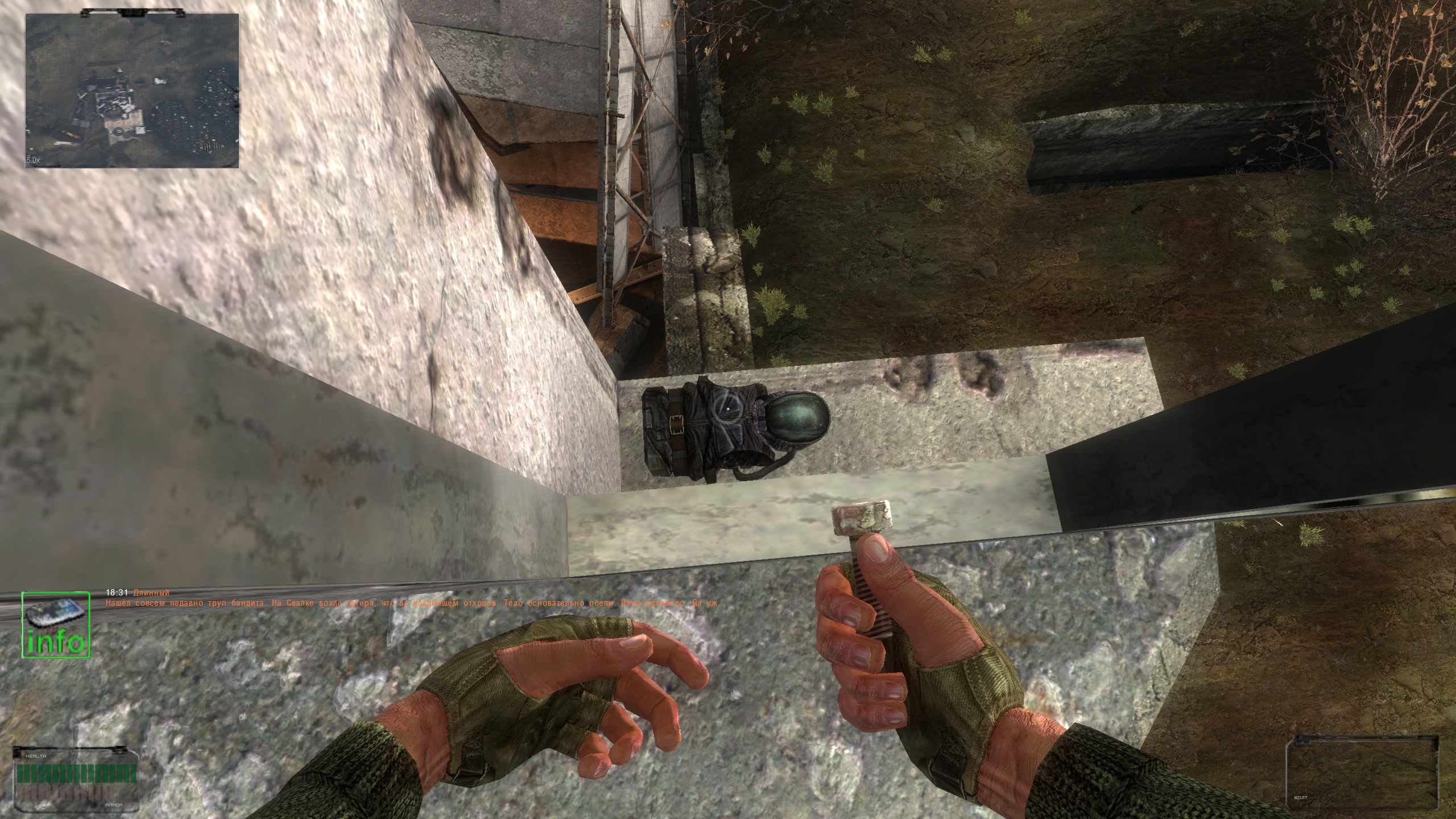 21:28 Дима Гриб На Свалке, что северо-западнее Депо, увидел сумасшедшего сталкера. Тот дергался, стрелял во все стороны и громко кричал, что хочет стать объебосом. Видать излучения хапнул, бедняга. Обходите стороной.