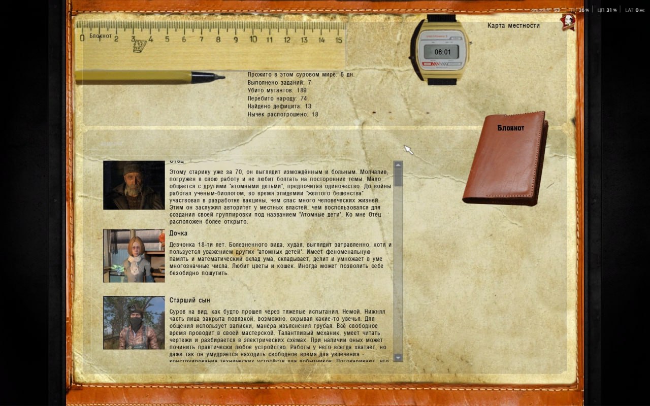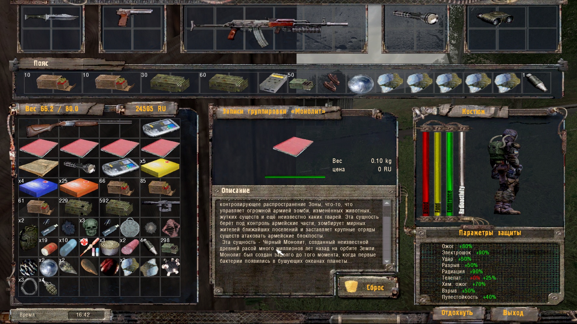 Что касается механик которые так любят васяны то тут все очевидно для смотрящих глазами: -вода бутылки с головой на местном дворе прохладная весна и вообще темпа летом редко доходила до 30, дальше у нас Зона, братан, по сему представим что первые выбросы изменили в некоторую сторону климат. Да и кроме того рядом река а сама територия - лес, поэтому есть и влажность в воздухе и прохладные ветра с регулярными дождями. Далее спальники - тоже хня. Если и натягивать сову на это дело то условные среднестатистические вылазки у сталкеров длятся меньше суток-двух. Да и подавляющее колво кои новички\опытные стараются не отходить далеко от условных укрытий где можно обождать непогоду. Обоссаные ежедневные выбросы я по понятным причинам идут нахуй. По поводу тайников. - глубокая тема, так то. Понтовое содержимое тайников аля аптечка две колбасы хоть и рофловое но вполне наводит на мысль о том что в вылазке любой предмет может быть на вес, буквально. Книги же в большинстве тоже идут нахуй