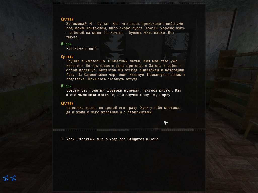 После первого квеста Ржавый заартачится. Можно его припугнуть, а можно затерпеть, но зато получить доступ к лорным подземельям Кордона. Кстати, у меня этот момент забаговался - можно сначала получить рацию, а потом все равно заглянуть в подземку