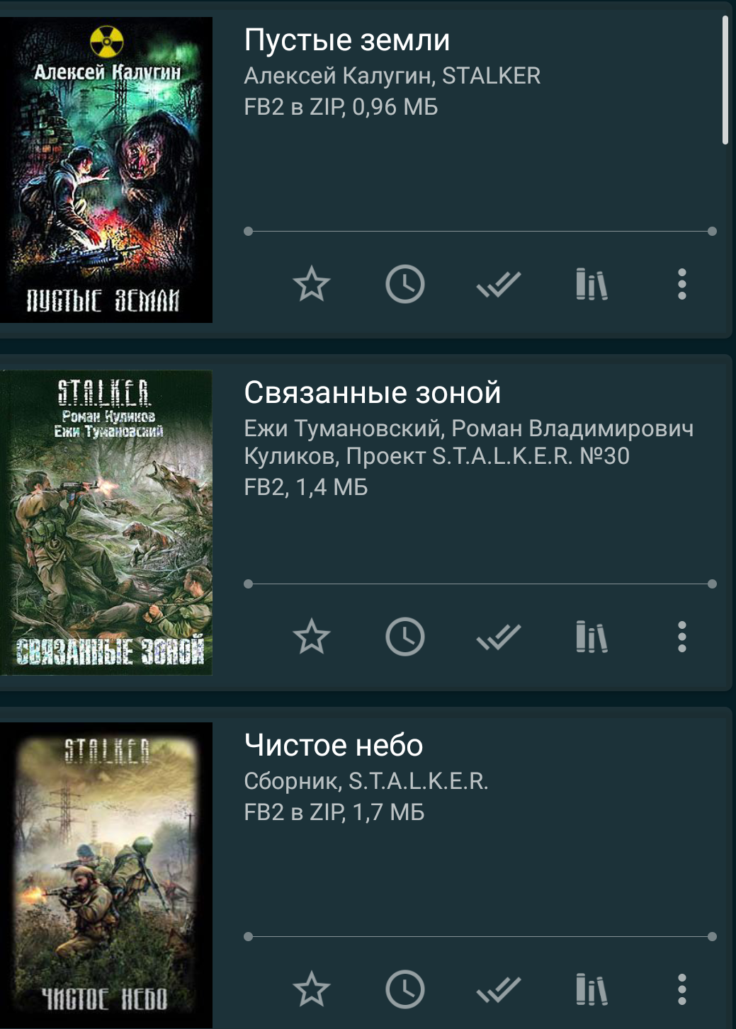 Здорово, ананасы. Когда мне было 16 лет, мне нравилось читать сталкерские книги, я прочитал где-то штук 15. Когда мне был 21 год, я выкинул к хуям все бумажные версии кроме одной. Сергей Недоруб - Признаки жизни, эту книгу вспоминаю с теплотой Наверное, я вырос из них, потому что считал и считаю их если и не говном, то очень посредственной литературой, т.к. мне не повезло нарваться на хороших авторов. Сейчас мне 27, решил посмотреть в интернете топы сталкерских книг и выбрал "Пустые земли" Калугина. После прочтения остался привкус бульварщины. Стоит ли вообще читать другие: Зона поражения, Линия огня, серия про Химика и Пригоршню, Мечта на поражение, Дом на болоте? Может кто подскажет что-нибудь? Ещё вспомнил "Охотники на мутантов", тоже понравилась