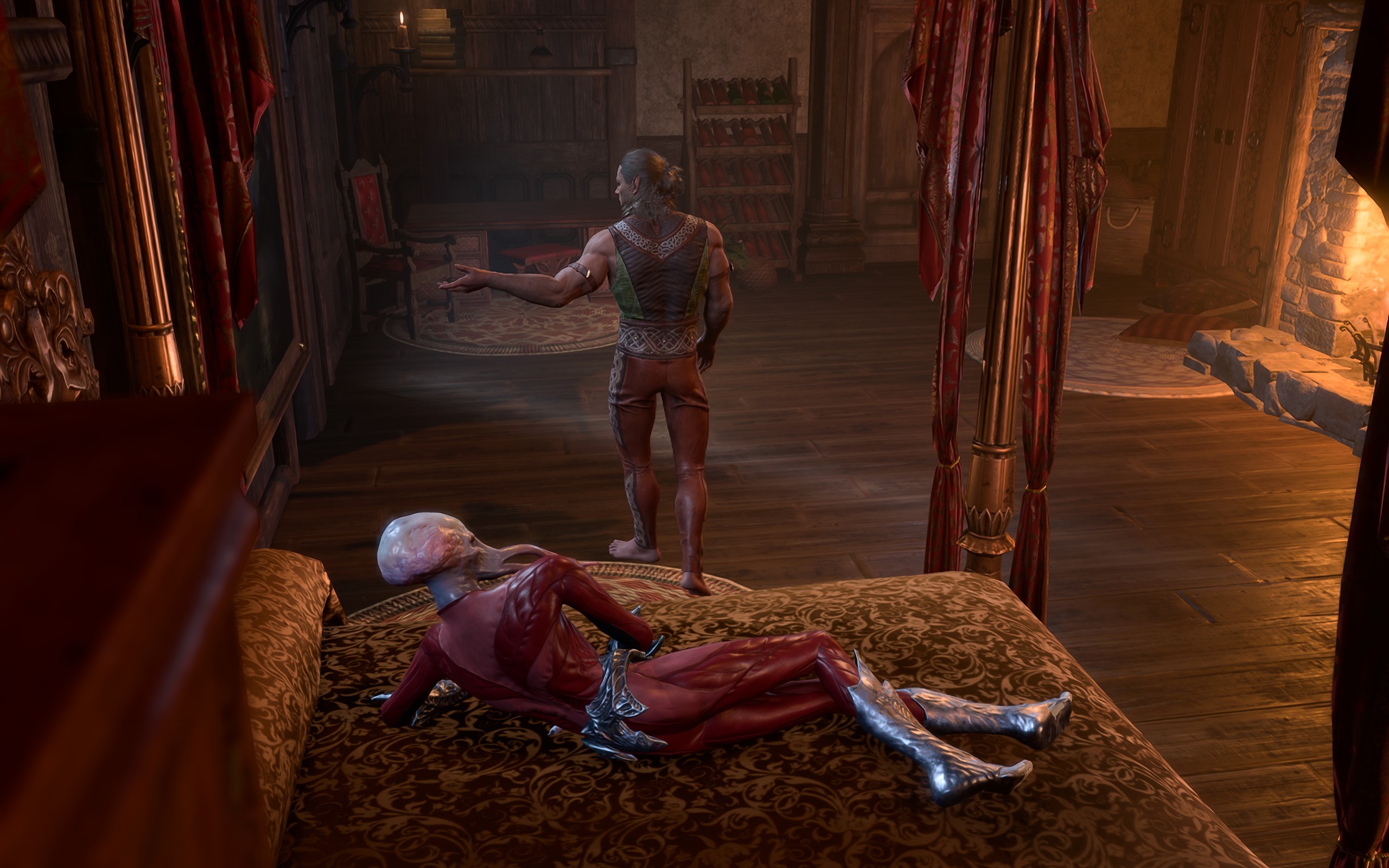 Кстати! Я на текущем ране, буквально пару дней назад, пошёл бесплатно ебаться с тянкой-дроу в награду за то, что выяснил, где эта Фиона. В итоге, когда мы зашли в комнату, она на меня сагрилась внезапно. Я так и не понял, из-за чего. То ли из-за землетрясения словила агр, потому что оно вроде случилось, когда мы зашли. То ли из-за того, что я с рапирным камбионом зашёл. В итоге поставил нелеталку, чтоб просто вырубить её, но на камбиона это не действовало, похоже, и он её ёбнул с одного удара, лол. У братца её, кстати, нет никаких диалогов на этот счёт, я-то пошёл ему сказать, что случайно ёбнул шлюшку.