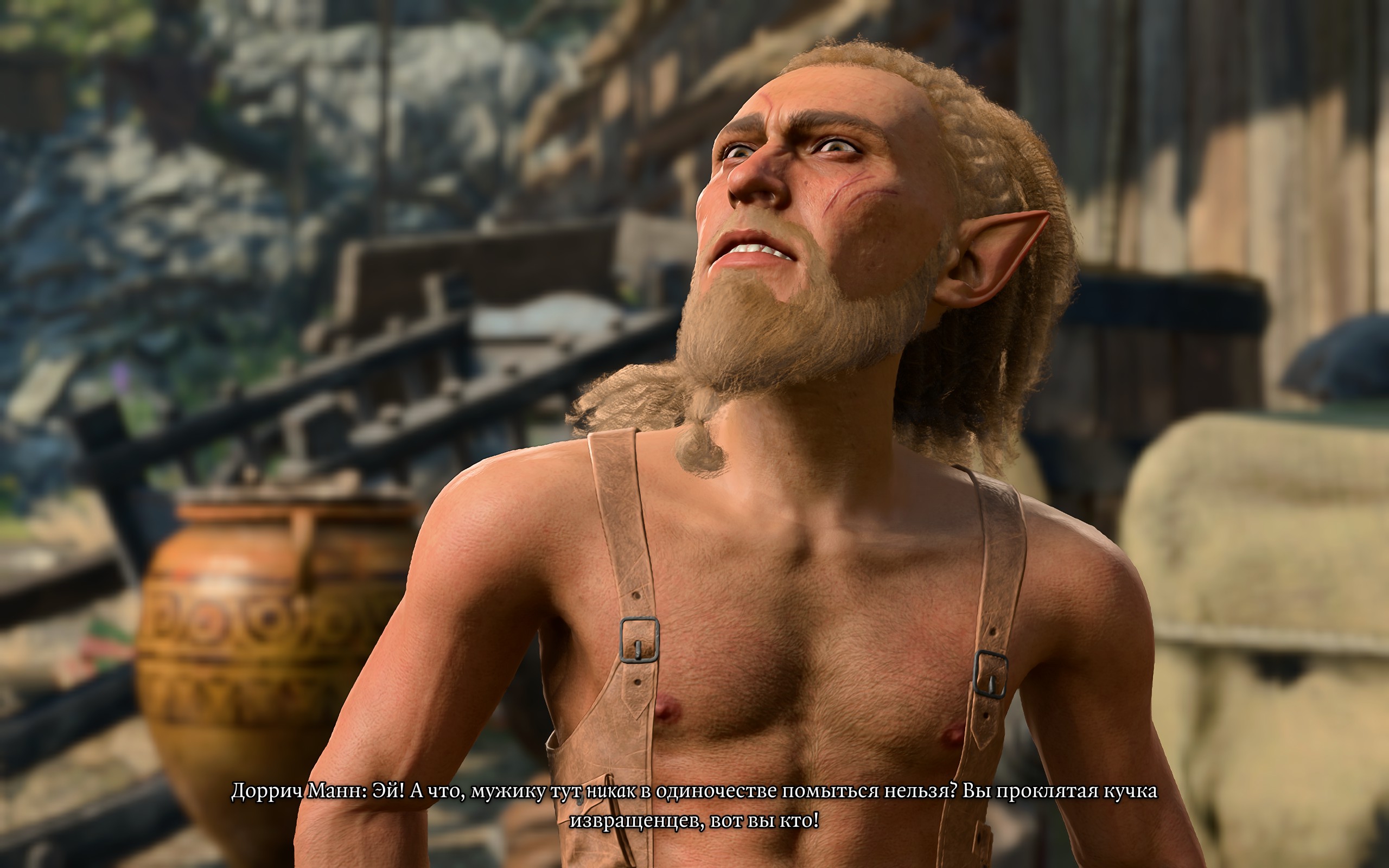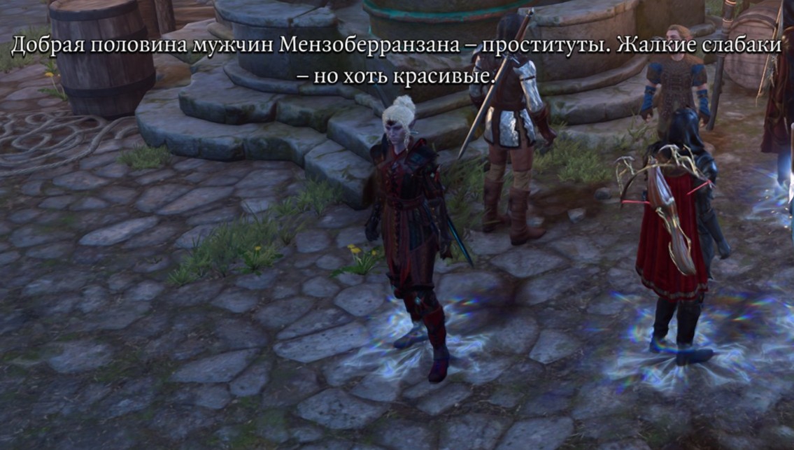 >>50107560 >Мне кажется раса больше разнообразия несет. Да, но эффект может варьироваться. Если играть за дроу, то гоблины чешут репу, свирфы относятся с опаской, в целом все плюс-минус нейтральны. Но! Время от времени проскакивают агрессивно-садистские реплики, которые выбиваются из обычного течения очень сильно. Пример: если зарейдить рощу с Минтарой, то одним из вариантов на вечеринке будет что-то вроде "лолт дроу: а теперь я убью тебя, сука-предательница"