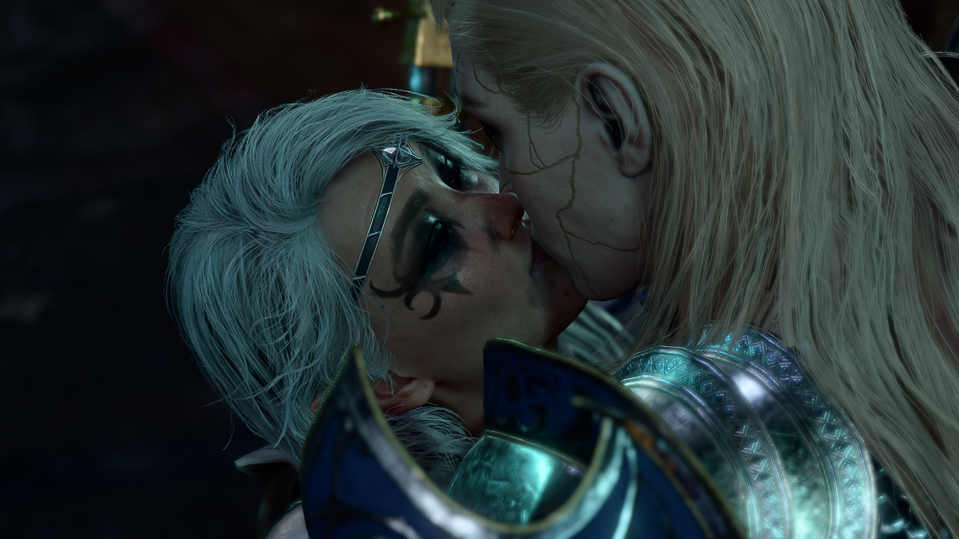 Ну во первых это самая кринжовая лесбийская сцена в истории видеоигр. Во вторых, есть мод который убирает трещины с ебала этой ангелицы? Они меня тригерят заставляя думать, что она голем.