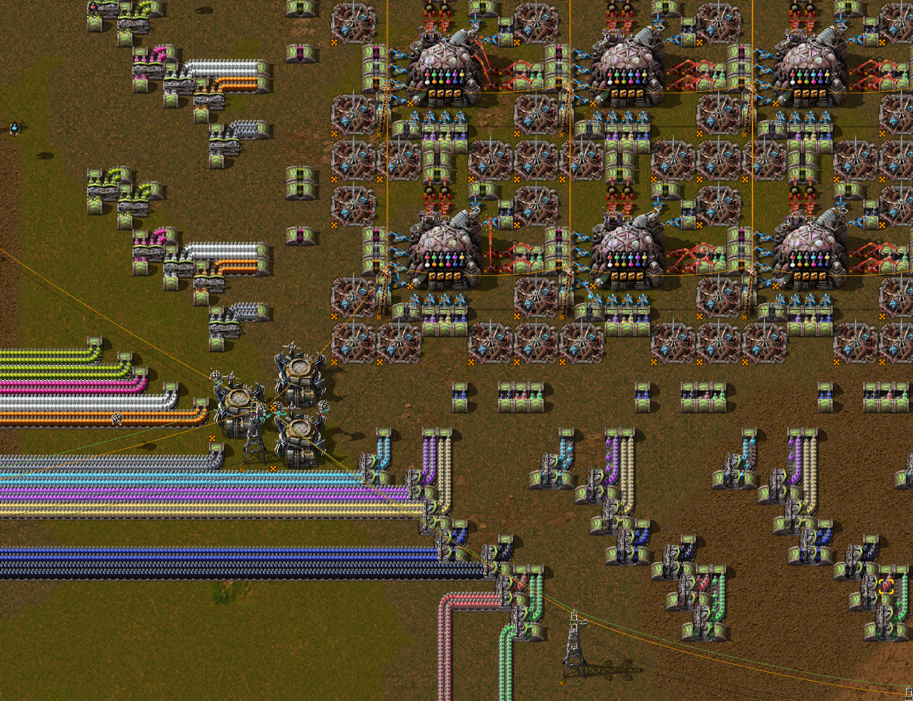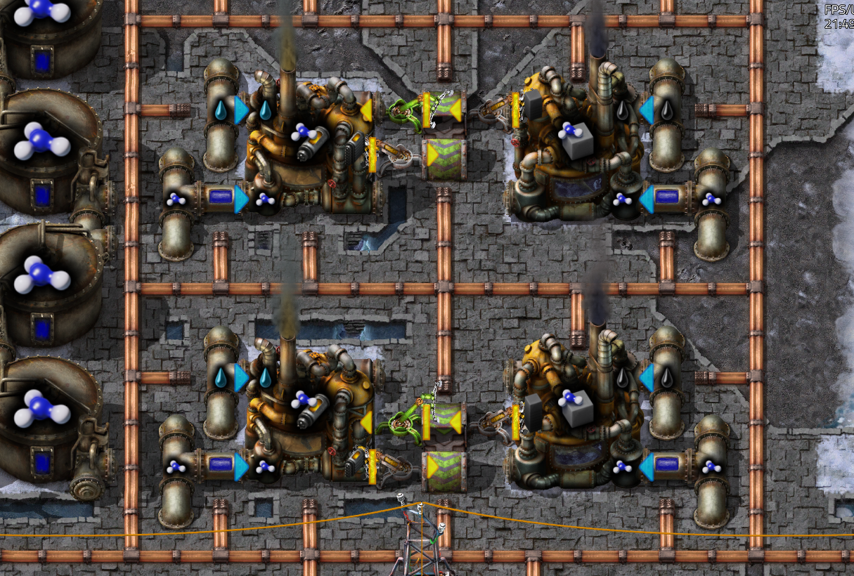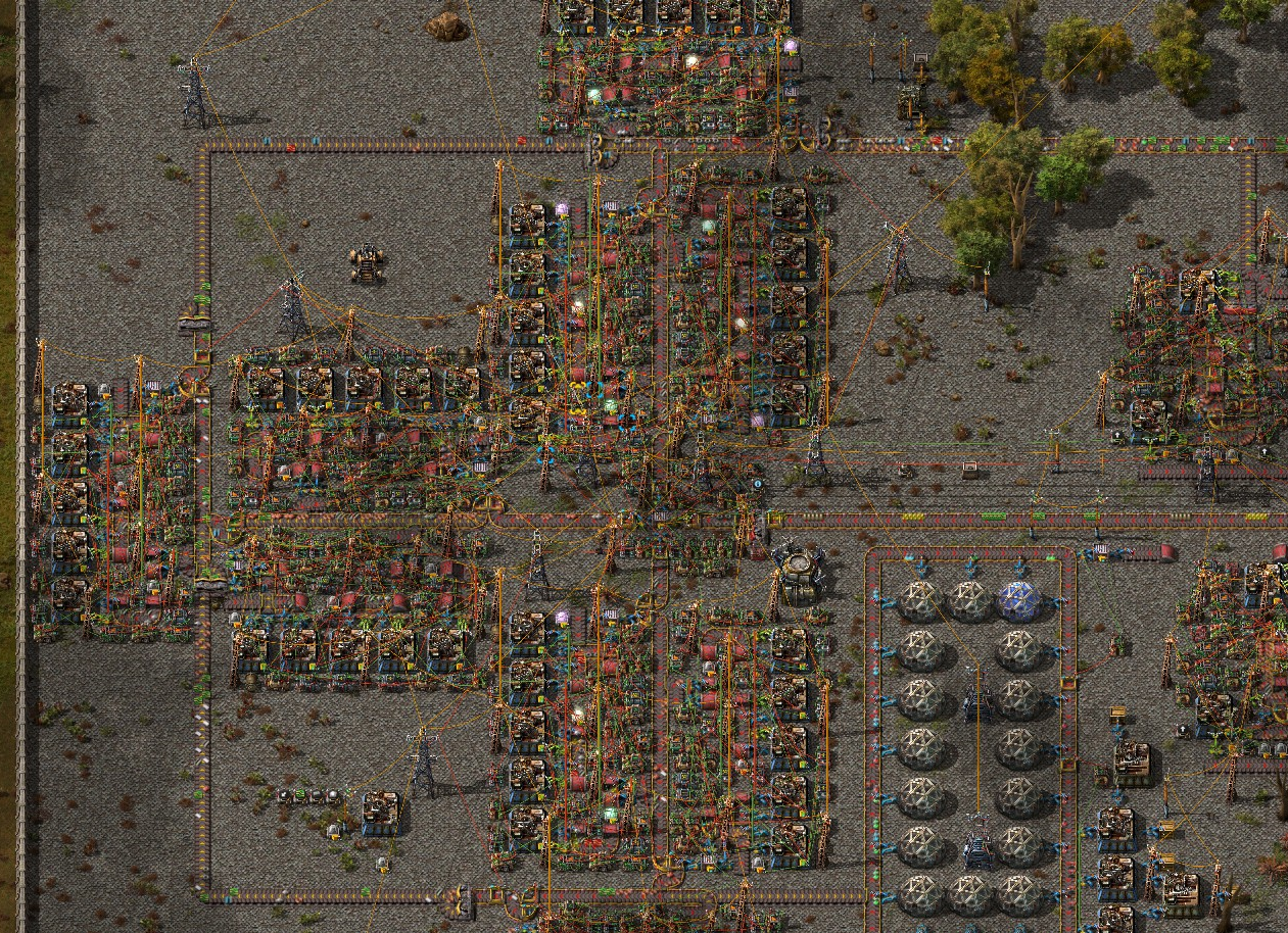 >>50286539 Это была попытка в централизованную переработку всех нефтегазопродуктов в пу. Идея была не то чтоб плохой и довольно элегантной (соединил всё в одну схему и знай настраивай приоритеты и правила), но в итоге упёрлась в совершенно безумный потенциальный размер инсталляции, вызывающий проблемы с масштиабированием и дикий траффик вокруг неё, так что в итоге пришлось это дело разнести по углам карты, к месторождениям. А хуёвину потихоньку демонтирую, хотя она мне пока ещё топливо делает. Потому что так красивее.