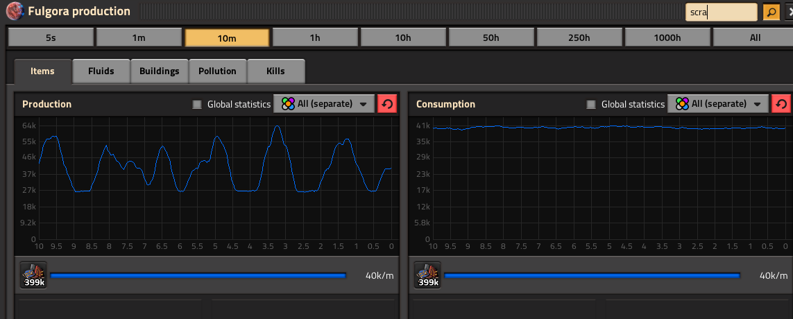 >>50074733 У меня маленькая фулгора, я вот сейчас как раз думаю, делать большие базы, или я уже наигрался. Гольмий вот, линии скрапа считать немного неудобно, т.к. у меня там в паре мест нечитаемый пиздец нахуеверчен, но можно вот так продакшен и консампшен посчитать, а дальше сам дели на линии, такие дела.