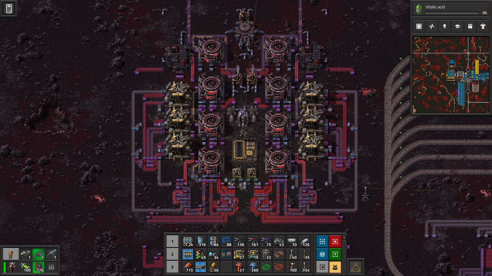 >>50276023 играю примерное по твоему принципу, (с учетом того что я ещё ничего не сжигаю, сливаю только грязный ил), база на синих+ банках работает, (поезда в основном пластины возят (скоро от этого откажусь, открыта плавка всех металлических деталей типо болтов, прутьев и тд из жидкого металла, буду трубами доставлять а возить поездами боракс и литейные подложки), дерево, мох куда нужно, некоторые растения, кокс банки на белтах, на дронах мини-молл работает, боеприпасы по периметру (арт.снаряды и патроны в турели), и редкие компоненты типо мк2 плат, всякие нейроматрицы и тд, т.е. те которые делаются в небольших количествах. База уже настолько плотная, что думаю надо сделать сбоку от неё жидкостную шину (как раз сейчас пластины не нужны будут во все места, мелочевка вся будет делаться из жижи). Но с жуками тяжеловато воюется (танк + дроны vs 70 эволюции)