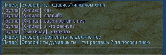 >>50098405 Типичная игра в ванилу с пиратским контингентом. Тебя же не смущает что каждый второй в чате пишет: >ИЩЮ ну и с чего этим людям себя адекватно(в твоем представлении) вести? Люди не просто так играют в актуал и в страшном сне видят эти ванильные дейлики, дележку лута, хождение в рейд как на работу, ГМа-царька, голдбиты, дкп. Вот она, та самая социалочка, где страсти кипят не хуже доты, все ради нее.