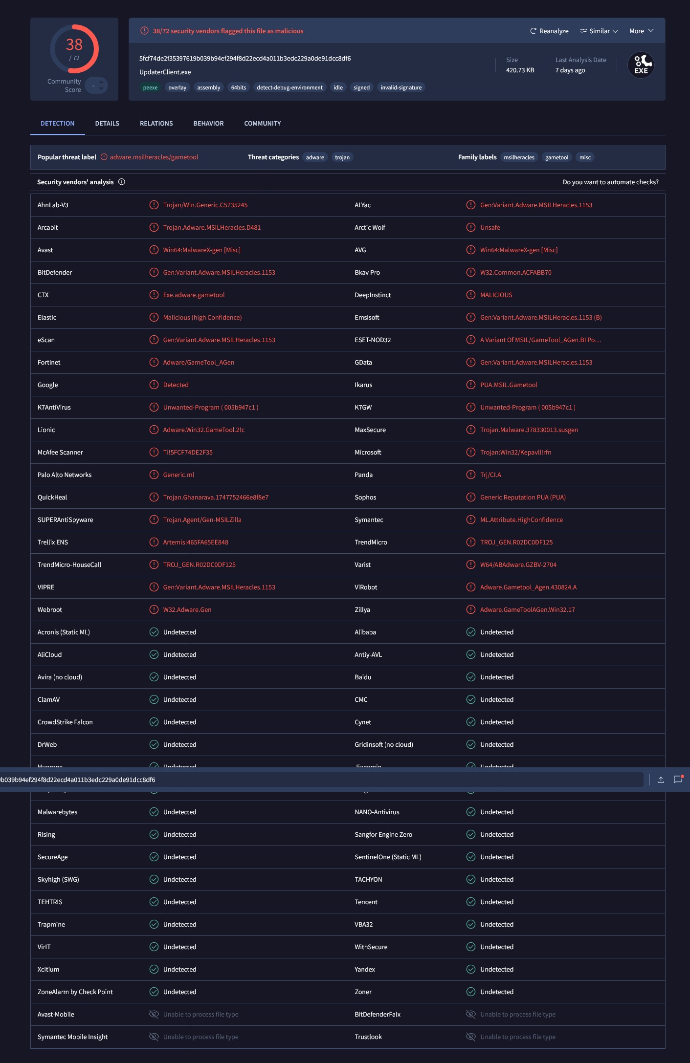 >>50090317 На него неебически ругаются антивирусы и даже без спроса выбрасывают в карантин gameguard. Что туда запихнул Томара, я вообще ХЗ, раньше такого не было.