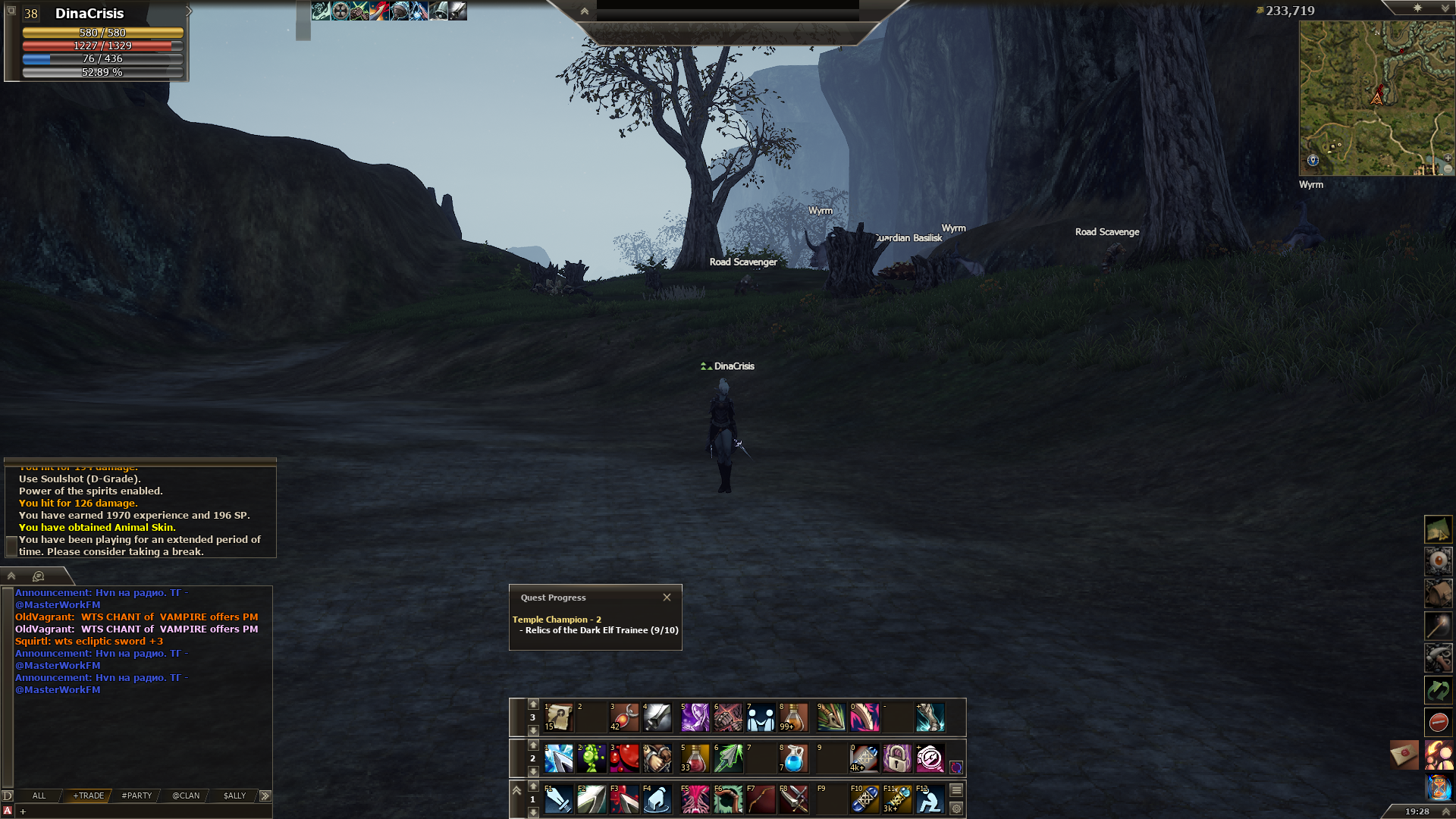 побегал сегодня танчиком решил что уже вырос из ол махум чекпоинта и пора менять спот, пока что думаю между ег и топями крумы сломал шапку на +5 сделал бычка регнулся в каты накрабил 2+ ляма на будущий ц грейд в продаже кончились семечки, поэтому квест на наживку от ланкосто подождет до завтра калмор х1