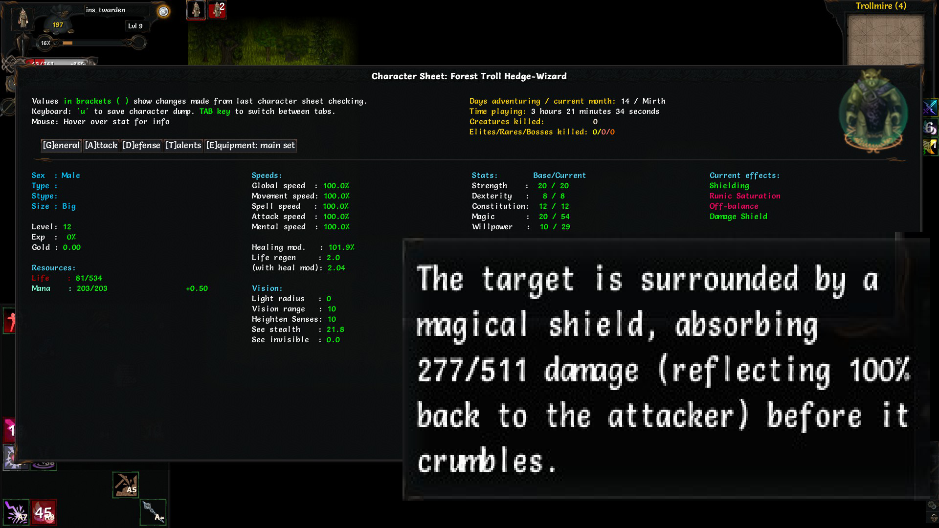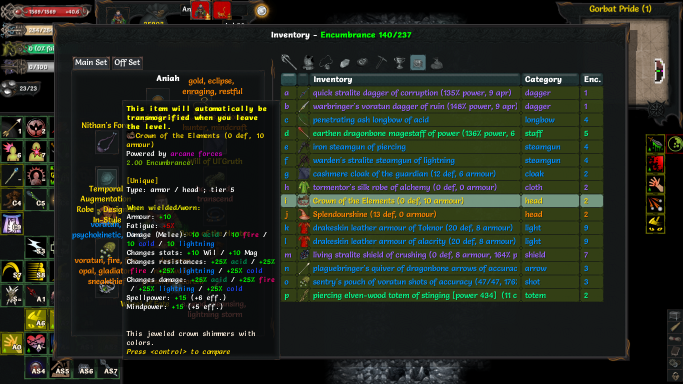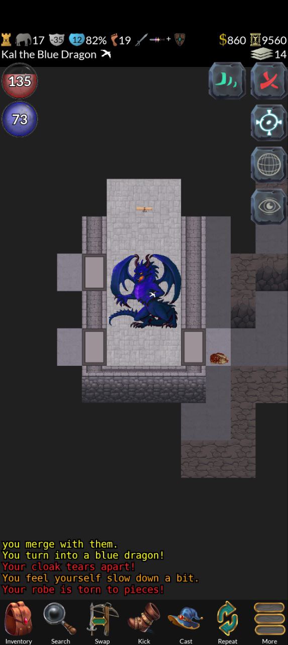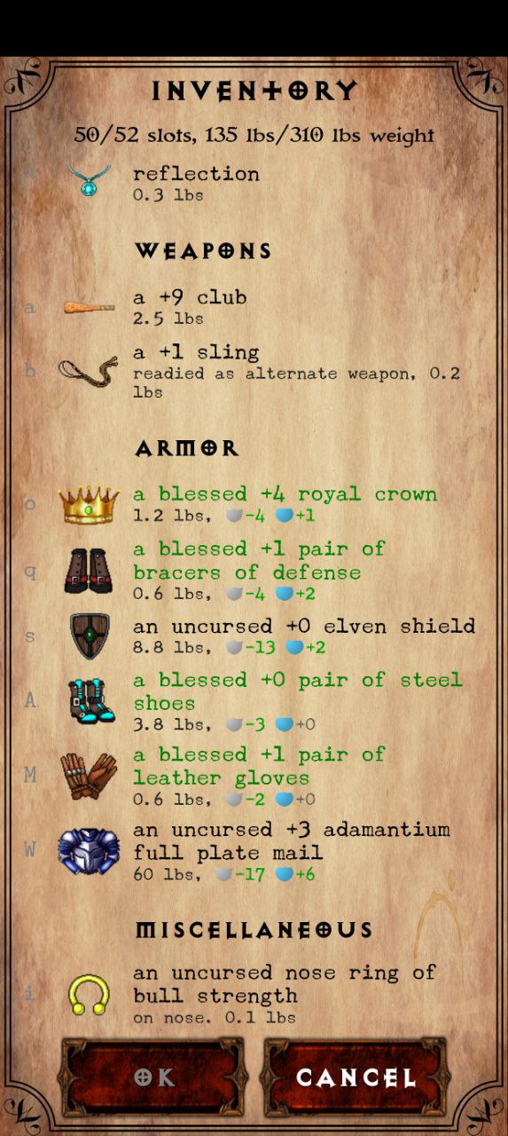 Что за нах? Душусь в этом забеге пиздец просто. Лишний раз стараюсь неопознанное не одевать, бегал оружку\броню прокачивал на первые уровни + заправлял фонарь, вроде как довольно неплохо одет, но с какого-то лвла меня начинает рандомно телепортировать... я весь инвентарь обшарил - ничего. Потом иду и хуякс - меня в тигра превращает с нихуя. Ну ладно, может на ловушку встал или какой-то хуй из палочки полиморфа выстрелил издалека. А у тигра хп мало, я чуть от гаргульи не откис, съебал от нее на свитке телепорта, отхилился, потом подчистил уровень. Иду дальше - опять меня продамажили, я убежал и решил отдохнуть и тут на меня веревольф нападает, с тигром нахуй! И дают мне нехилой такой пизды. Я на последних хп молюсь - меня обратно в человека превращает и отхиливает. Хватаю дубину, одеваю броню, даю им пизды и меня снова в волка превращает! Я опять молюсь, меня снова в человека, я их добиваю, лутаюсь, использую единственный свиток идентификации на кольцо и оно, внезапно, оказывается Protection from Shape! Ну, по-идее, от этих внезапных полиморфов я спасен, но вот телепортация никуда не пропала. Я вижу, что в стате что-то типа природного телепорта, но что это за хуйня? Это что? Прокачиваешься и начинаешь просто рандомно телепортироваться? В чем сакральный прекол?