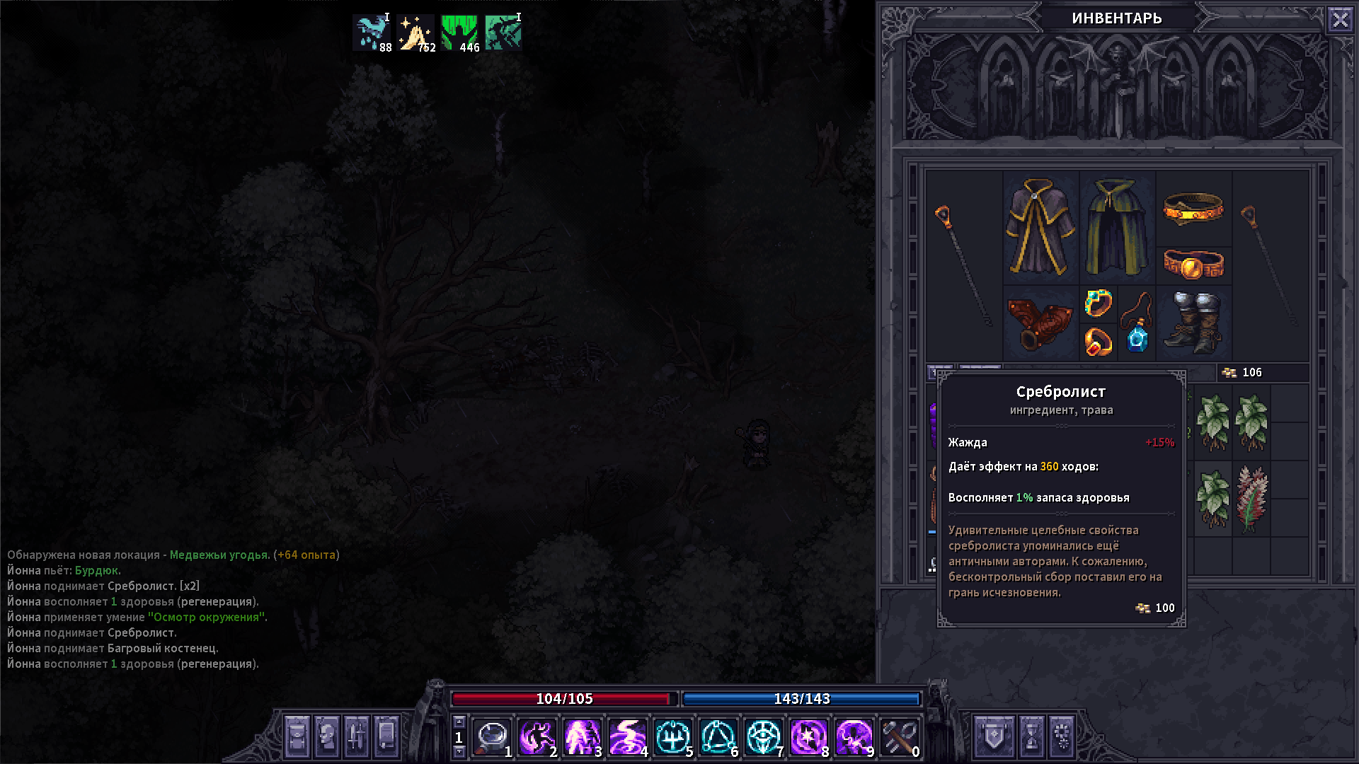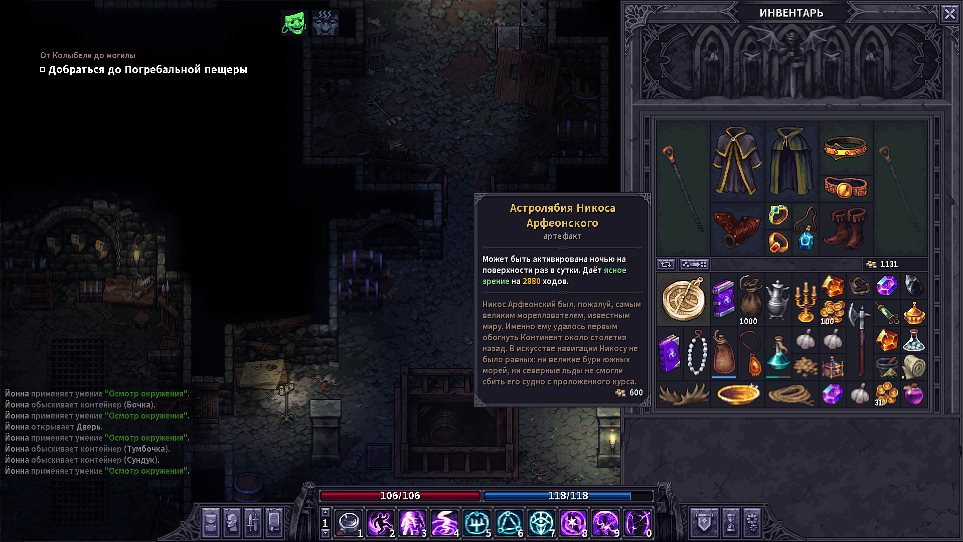 Все еще живой. Залупнулся на неквестовый данжик на 4 черепка. Даже пару раз было неприятно. Зато вытащил какую-то астролябию буду смотреть, что она делает.
