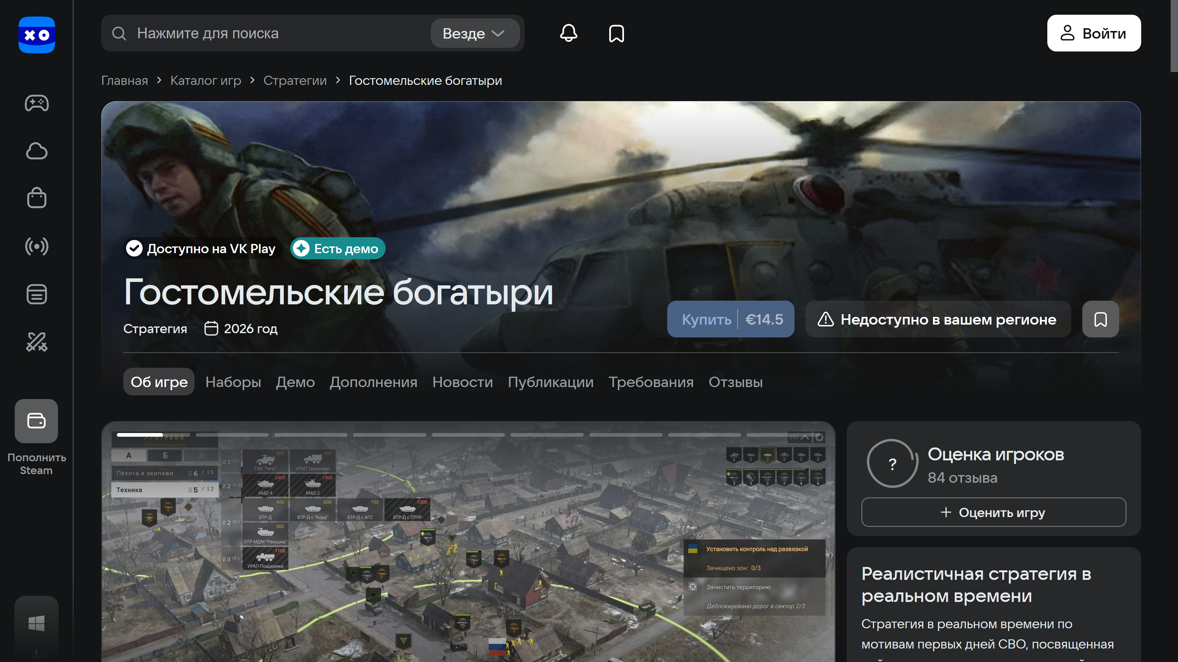 Добрейшего дня вам, друзья! Так как вопросы про релиз продолжают звучать, давайте мы ещё раз всё проговорим! Релиз игры "Гостомельские Богатыри" состоится 24 февраля 2026 года, в 4-ю годовщину начала СВО, и высадки десанта в аэропорту Гостомель. Цена игры будет 750 рублей. На текущий момент точно можно сказать что проект будет на VKplay (заходите, добавляйте в избранное!) Со Steam продолжается работа, если получим одобрение от площадки, конечно же об этом сообщим! Так что осталось не так уж и долго. И да, в день релиза помимо игры станет доступна для скачивания демо-версия, так что сомневающиеся смогут поиграть в одну из игровых миссий и решить стоит ли тратить деньги на полную игру!
