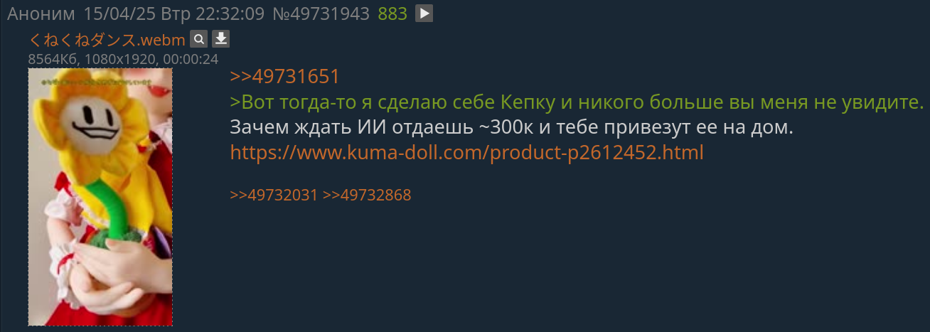 >>50296550 Как ОП, который перекатил Кепками уже 7 тредов, официально заявляю: таким луддитам как ты здесь не рады. А НейроКепочкам рады. И вообще любым Кепочкам рады